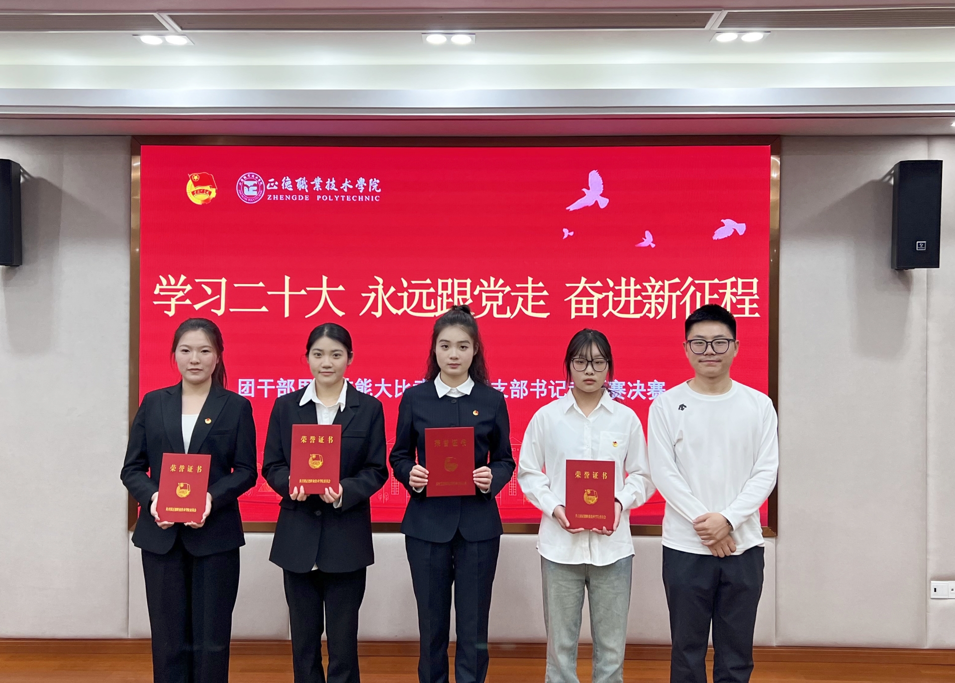 为深入学习贯彻党的二十大精神,进一步聚焦思想引领主责主业,团结带领探花porn 团员青年坚定信念跟党走,勇做走在新时代新征程上的奋进者,用党的创新理论武装青年团员,用党的思想凝聚引领青年团员,院团委于4月24日下午在5201会议室开展“学习二十大 永远跟党走 奋进新征程”团干部思政技能大比武团支部书记专项赛决赛。院团委书记黄晓帆、副书记魏兴彪、各系团总支书记出席并担任比赛评委。
