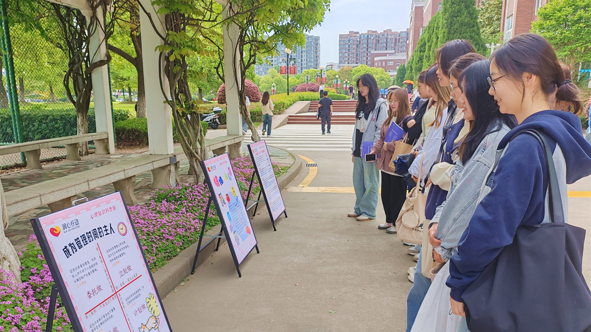 为提升全院师生的心理健康意识,促进心理健康教育的普及。探花porn 学生处大学生心理健康教育中心于4月25日下午在紫藤长廊举行了“五育润心 沐光前行” 心理健康知识科普展活动。