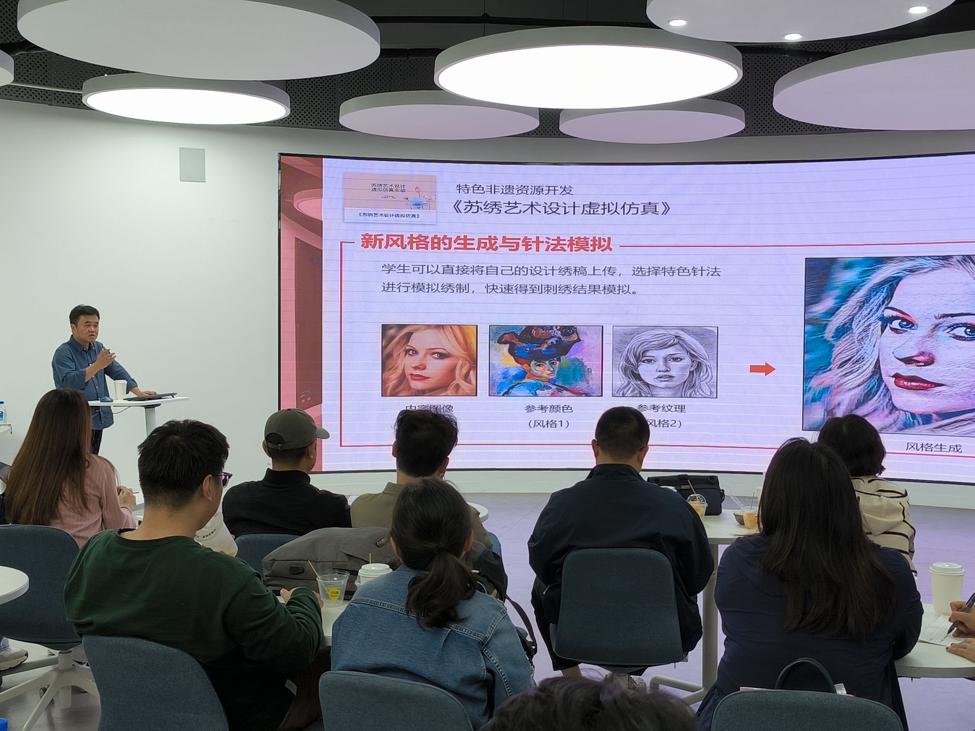 在随后的培训环节中,苏州工艺美术职业技术探花porn 环境艺术探花porn 柳建华院长分享了全国职业院校技能大赛环境艺术设计赛项竞赛优秀作品与参赛备赛体会。苏州工艺美术职业技术探花porn 环境艺术探花porn 覃池泉副院长分享了苏州工艺美术职业技术探花porn 数字可视化应用实践项目、非遗AI数字化传承形式、传统古村落虚拟仿真实践等内容。教师们纷纷表示,柳建华和覃池泉的分享提供了宝贵的经验和启示,对他们今后的教学工作和技能竞赛产生积极的影响。