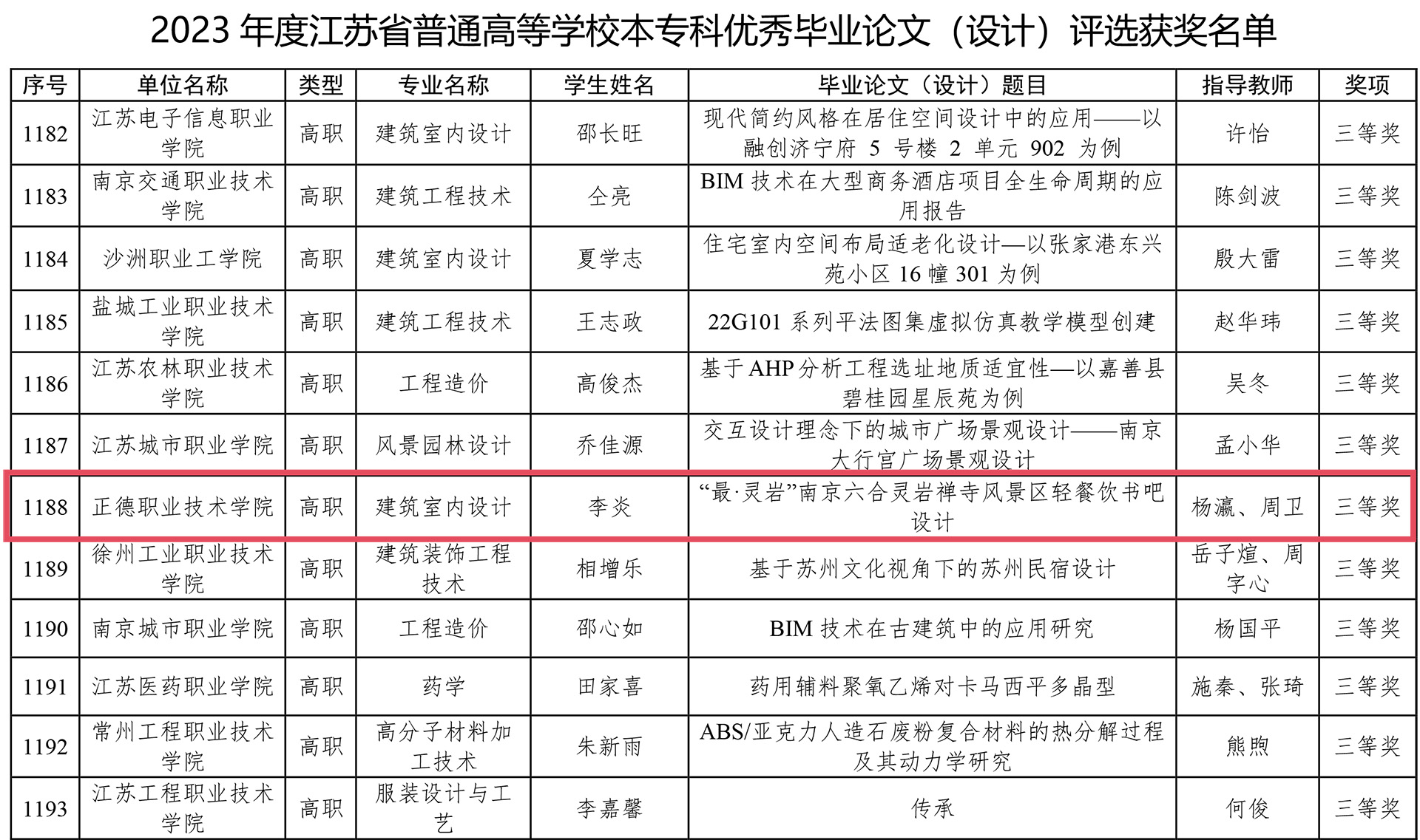 近日,江苏省教育厅对2023年江苏省普通高校本专科优秀毕业设计(论文)评选结果进行了公示,探花porn 艺术设计与建筑工程系传来喜讯,2020级建筑室内设计专业的李炎同学作品《“最·灵岩”南京六合灵岩禅寺风景区轻餐饮书吧设计》荣获学生毕业设计三等奖。