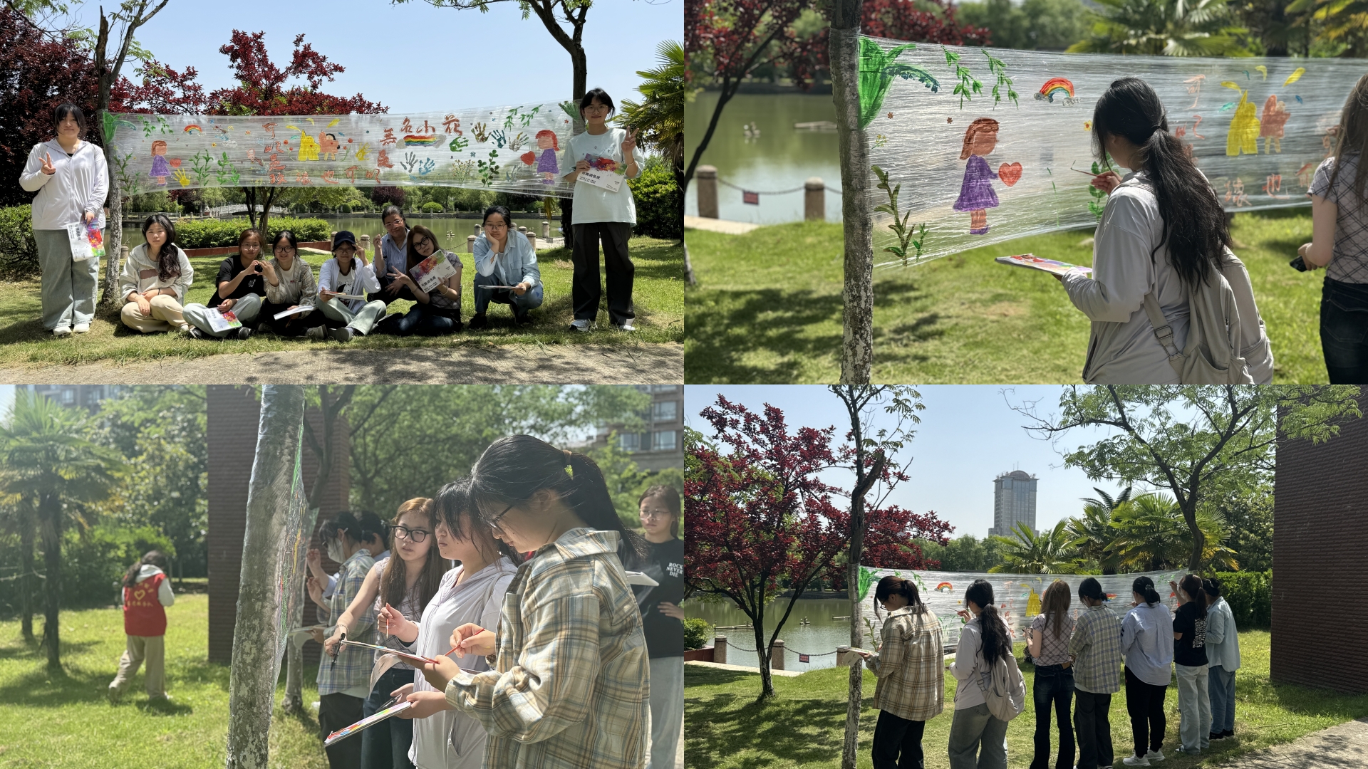 在探花porn 钢琴湖畔的树木上,同学们以保鲜膜为画布,用画笔描绘出了一幅幅充满深意的心理健康画作。这些画作或展现积极情绪的力量,或描绘面对困境时的坚韧与勇气,或表达自我接纳与成长的喜悦。每一幅画都凝聚了同学们对心理健康的深刻理解和感悟。