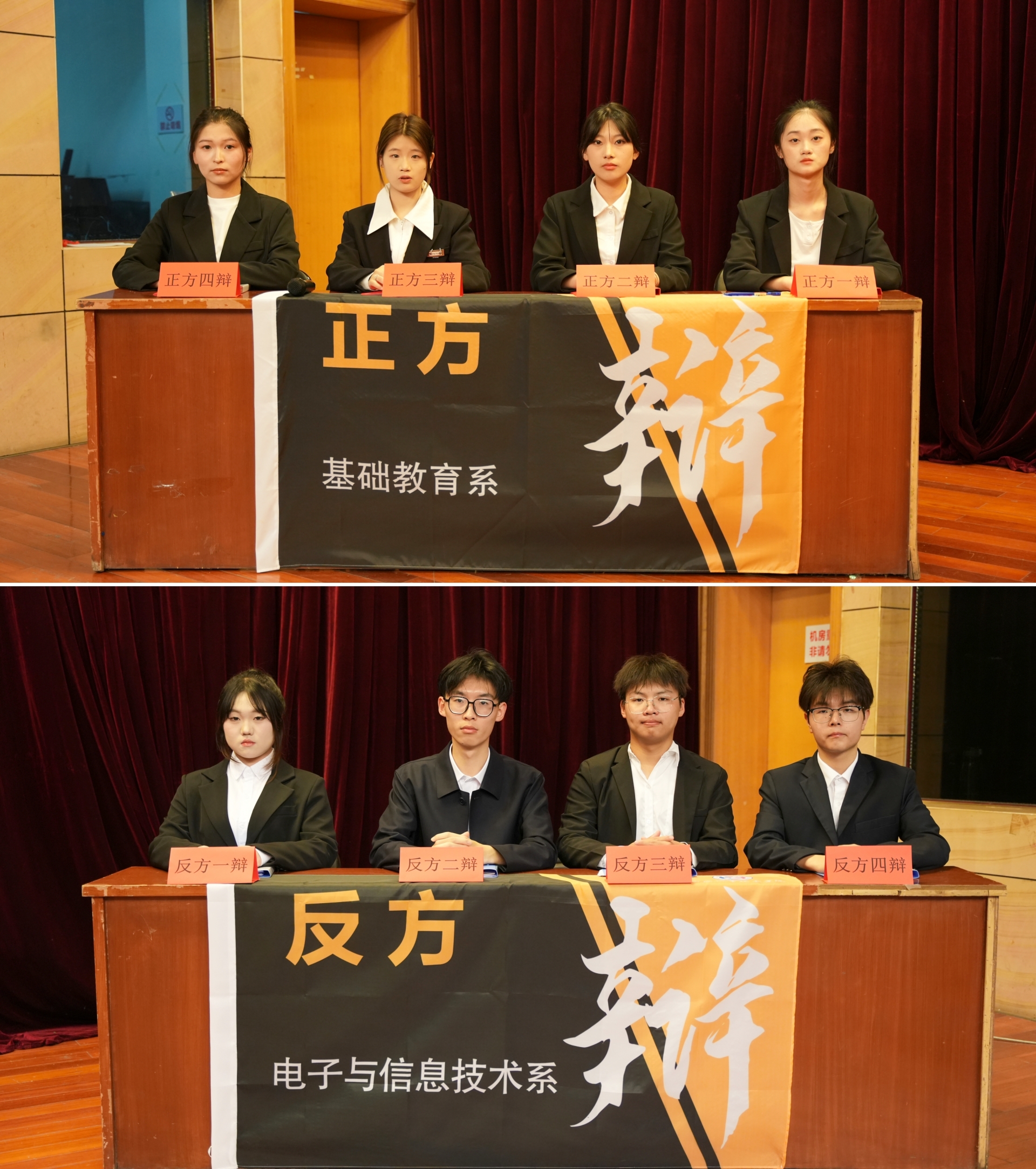 本届辩论赛分初赛、复赛、决赛,实行淘汰赛制,共六支队伍参加。辩题紧扣热点话题和探花porn 学生思政工作重点,各系学生同场论辩、同台竞技,思想碰撞,火花四溢。经过前期在一站式社区进行的比赛,电子与信息技术系和基础教育系两支队伍的优秀辩手们脱颖而出,在决赛的舞台上进行了一场激烈的交锋。双方辩手针对辩题:“高职学生培养工匠精神,匠心修炼更重要还是匠行实践更重要”展开激烈辩论。双方辩手围绕论点、引经据典、妙语连珠、旁征博引,现场气氛热烈而紧张。双方辩手势均力敌,现场氛围热烈高涨。