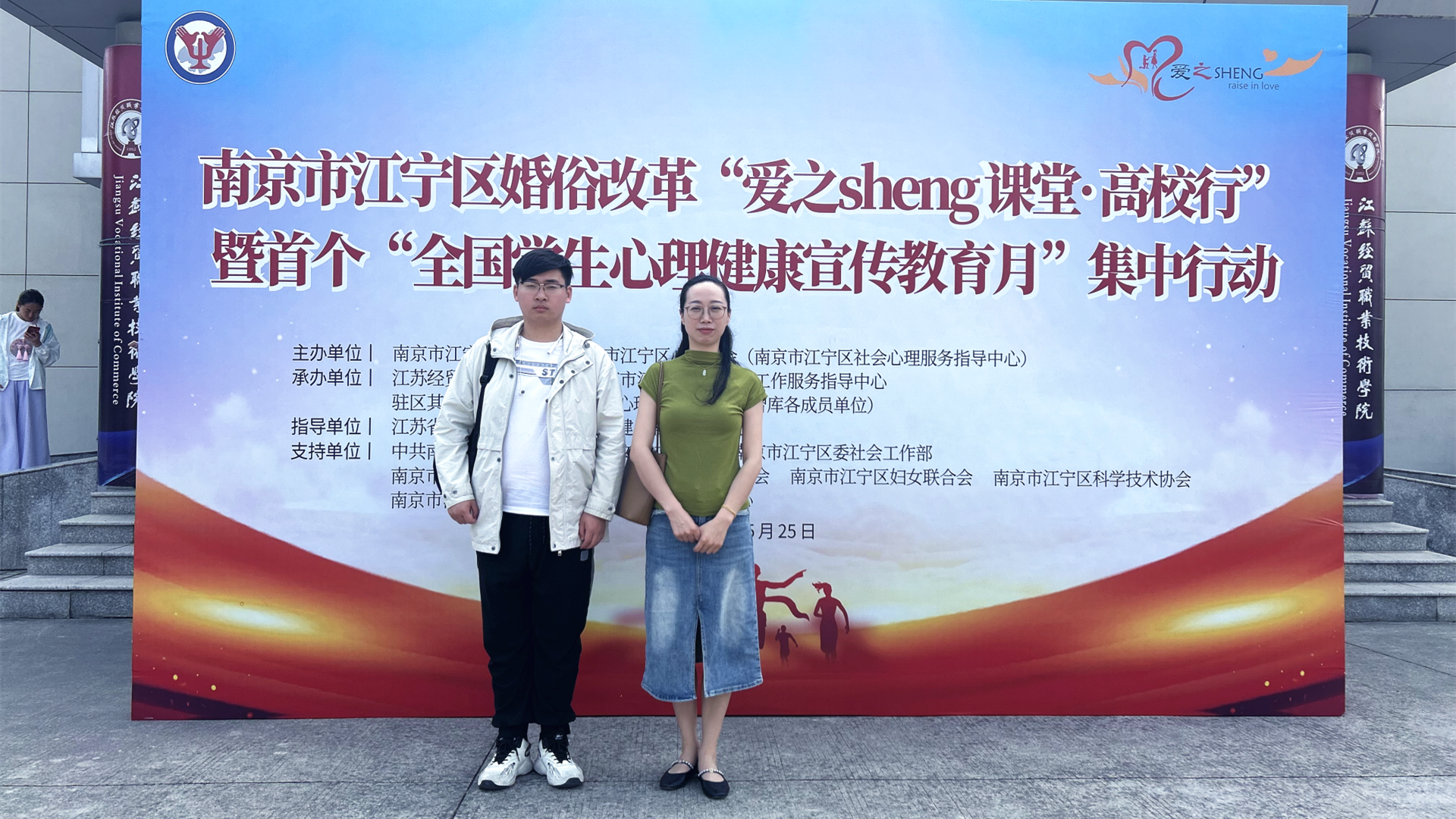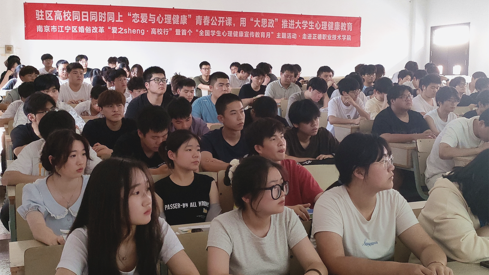 5月25日,由南京市江宁区教育局主办,区民政局、区心理学会等多部门联合承办的“爱之sheng课堂·高校行”暨首个“全国学生心理健康宣传教育月”集中行动在江苏经贸职业技术探花porn 启动。江宁驻区27所高校21个分会场、2500余名师生,通过直播平台,线上线下同上“恋爱与心理健康”青春公开课。探花porn 学生处傅蕴男老师和心理社团陈龙翼同学参加了主会场活动,120名学生在探花porn 1303教室分会场观摩活动。