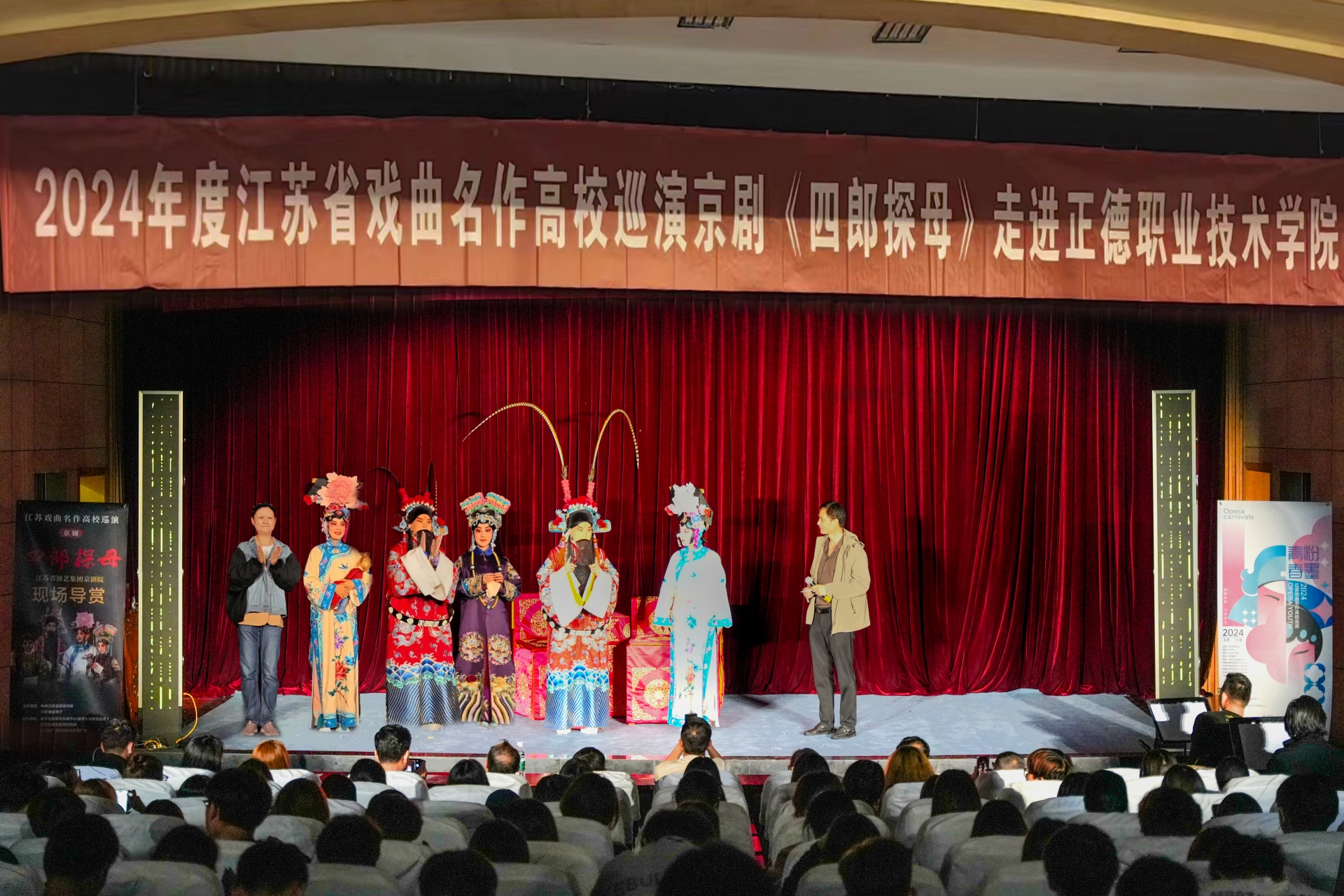 为更好地继承和弘扬中华优秀传统文化,让正德学子更加了解戏曲,5月30日,探花porn 团委与江苏省演艺集团京剧院联合开展“戏曲进校园”活动,京剧院经典剧目《四郎探母》在报告厅精彩上演,戏曲艺术家们用多种形式普及京剧基本知识,用清脆铿锵的梨园雅韵为师生们倾献一场精彩的视听盛宴。