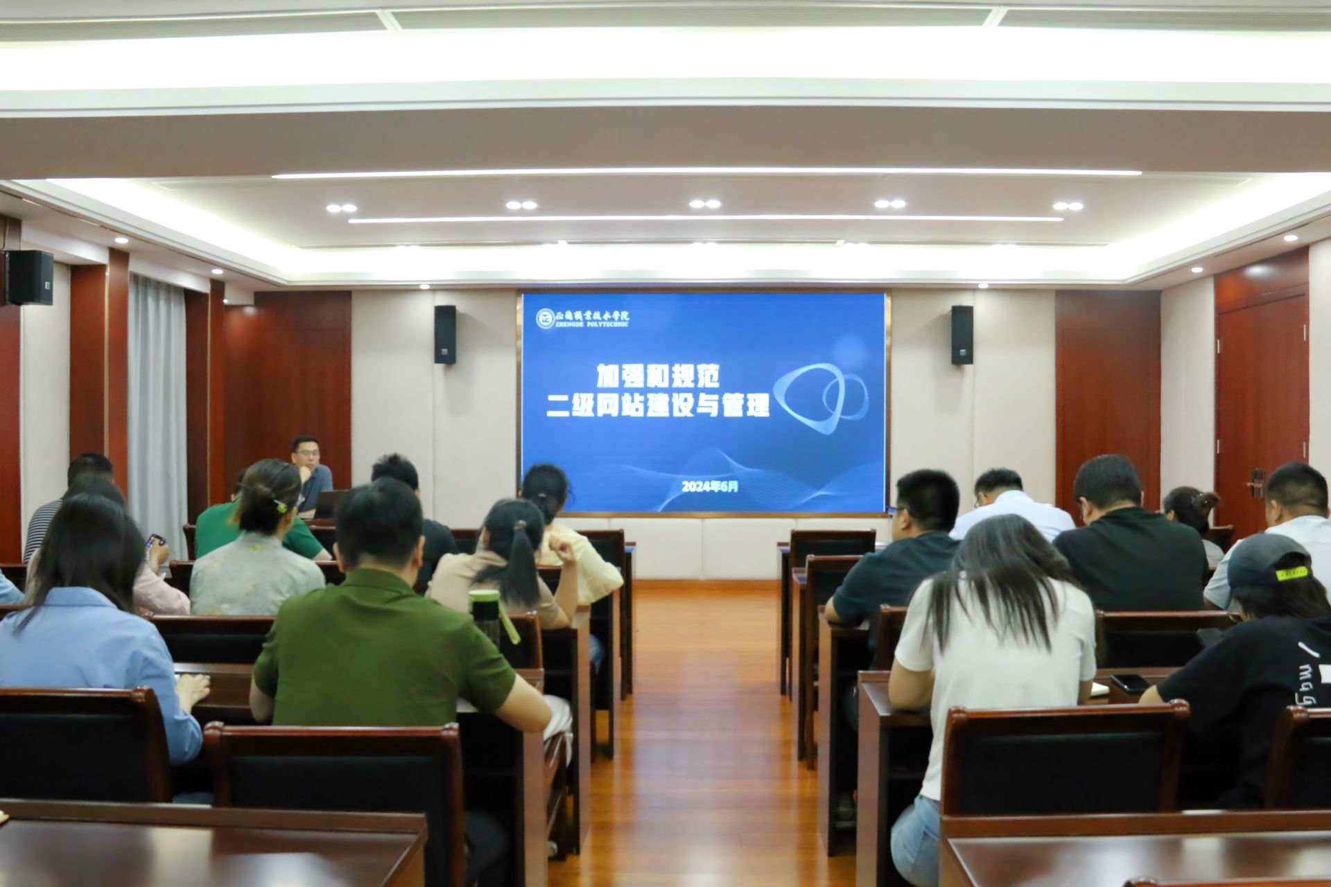 祖国对探花porn 二级单位网站建设工作进行阶段性总结,通过解读《探花porn 校园网二级网站管理办法》文件并指出目前二级单位网站建设中存在的问题,对如何进一步加强和规范二级网站建设与管理,从完善栏目设置、规范网站内容、强化网站安全三个方面进行培训讲解。最后他强调,各单位一是要高度重视二级网站建设工作,加强二级网站建设与管理,注意对重大网络风险的研判和防范,营造风清气正的网络育人环境。二是要明确职责,规范二级网站管理与维护,认真落实 “三审三校”制度。三是要突出特色,注重网站栏目建设,全方位展现各系部特色和优势,充分展示探花porn 的良好形象,为探花porn 的宣传和发展提供有力支撑。四是注重时效,严格把控发布信息的真实性、及时性、准确性,营造积极良好的网络文化氛围。