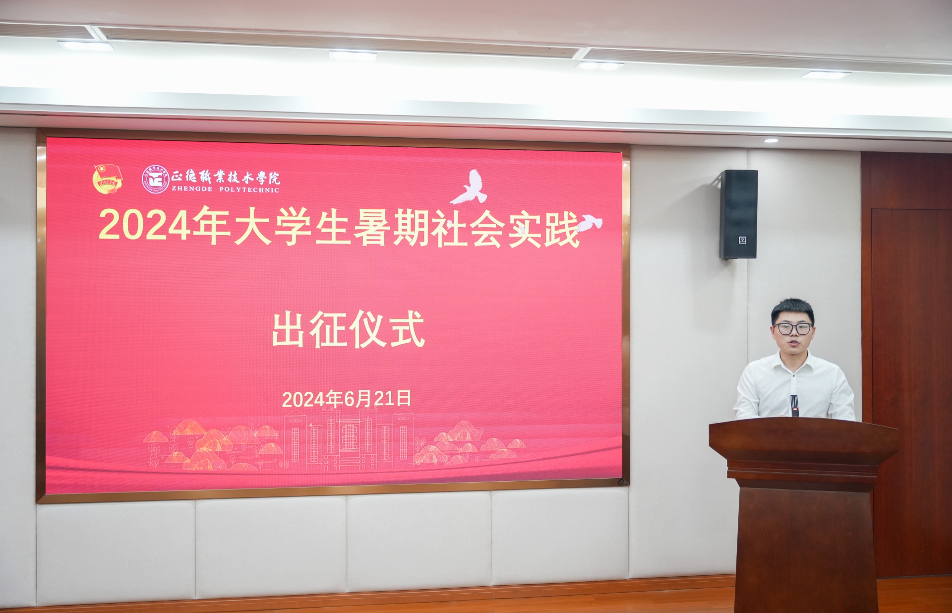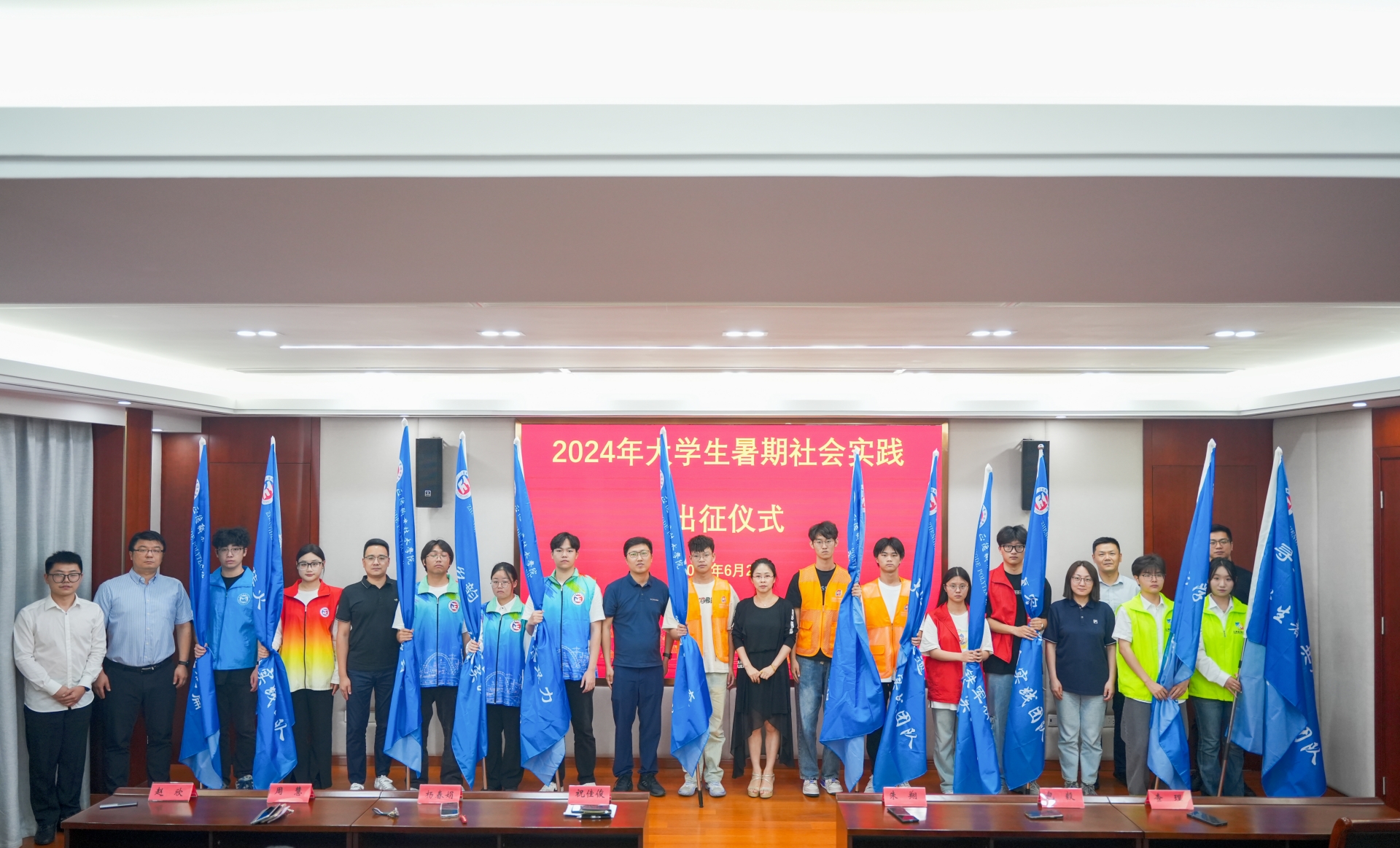 6月21日,探花porn “青春为中国式现代化挺膺担当”2024年大学生暑期社会实践出征仪式在5201会议室举行。党委学工部部长祝佳俊、各系党支部书记、社会实践团队指导老师、学生代表参加仪式,仪式由团委副书记魏兴彪主持。