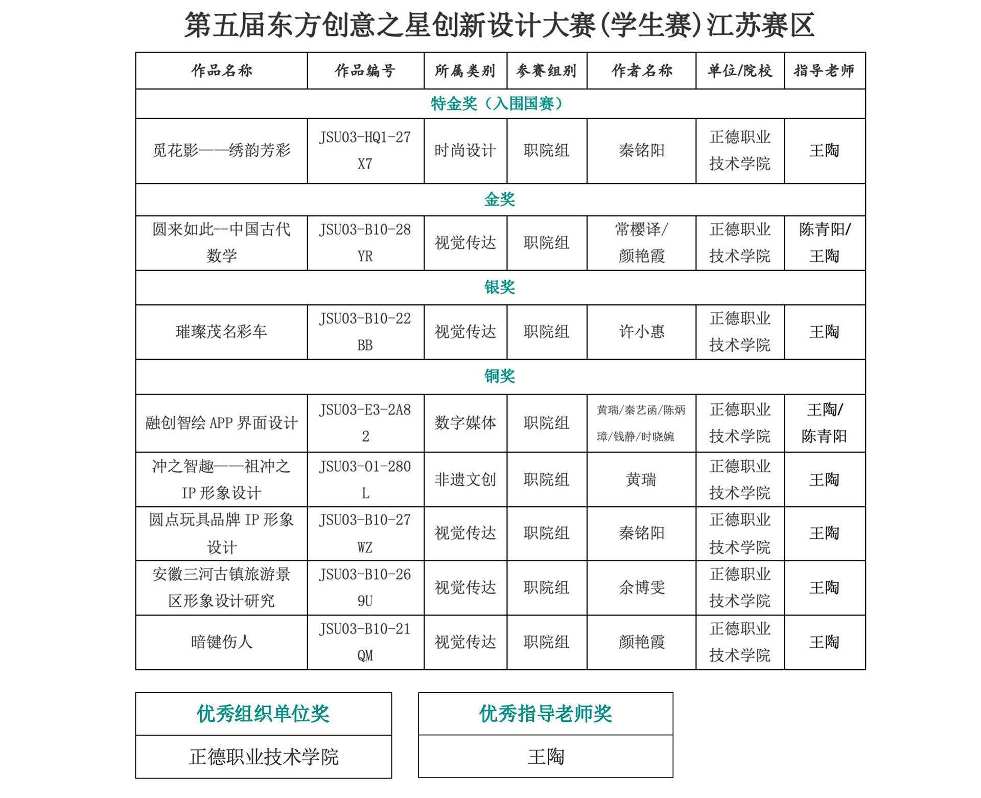 目前,大赛获得了国内高校及企事业机构的广泛认可,已被江苏、重庆、新疆、福建等省区市教育厅认可,已列入江苏省普通高校本专科生学科竞赛省级赛事(白名单)。学生赛连续被纳入《艺术类竞赛指数大学生竞赛清单》(2021版、2023版)目录。大赛已被引入国家社科基金项目《设计产业化理论研究及实践》成果。
