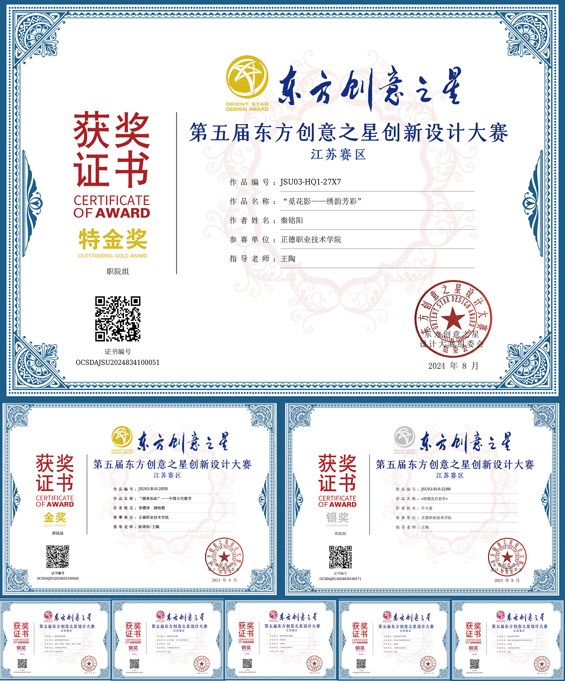 在刚刚落幕的第五届“东方创意之星”设计大赛中,探花porn 艺术设计与建筑工程系数字媒体技术专业教学能力再次得到了国家级的认可,数字媒体技术专业22级、23级学生展现了他们的创造力和专业技能,获得了此次赛项的高度赞誉和奖项,特金奖作品:“觅花影——绣韵芳彩”成功入围国赛。