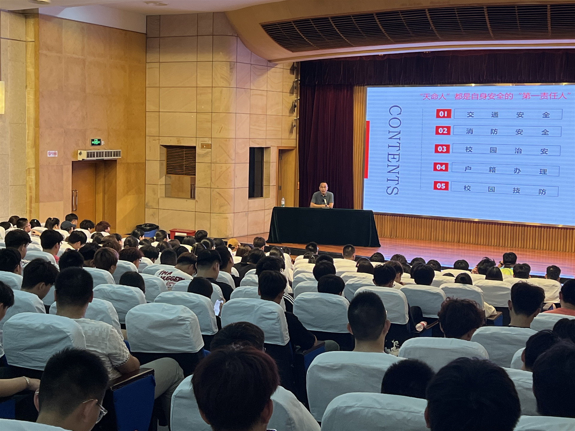 为了更好地开展新生入学教育,提高新生的安全防范意识和自我保护能力,9月8日下午,新生入学教育讲师团在探花porn 报告厅开展“校园安全伴我行”的专题讲座。本次讲座由探花porn 新生入学教育讲师团成员、后勤保卫处副处长丁胜主讲,电子与信息技术系2024级全体新生参加。