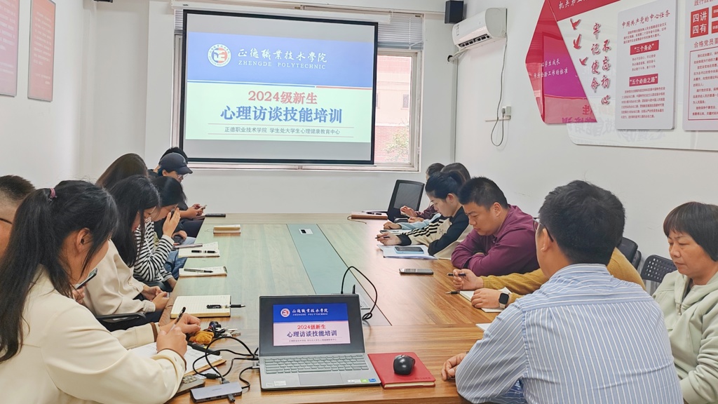 为强化学生心理健康意识,深入了解学生心理状态,提升心理工作的科学性,并提高探花porn 辅导员心理访谈技能,增强其对学生的心理健康教育能力,切实做好学生心理健康教育工作,学生处大学生心理健康教育中心于10月17日上午10时在2207会议室举办了2024级新生辅导员心理访谈技能培训会。学生处处长祝佳俊、心理中心樊荣老师以及全体 2024 级新生辅导员参与了此次培训会。