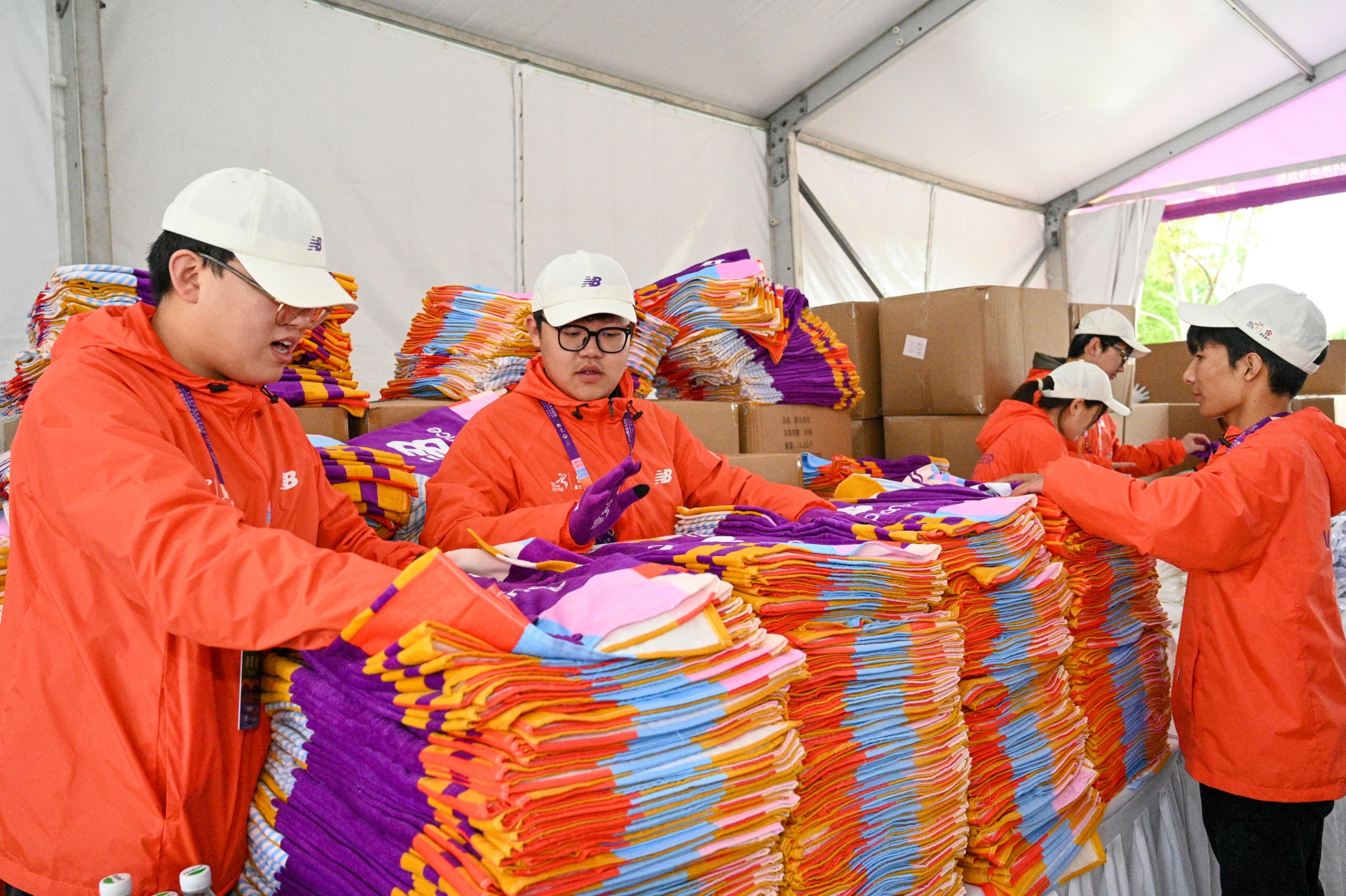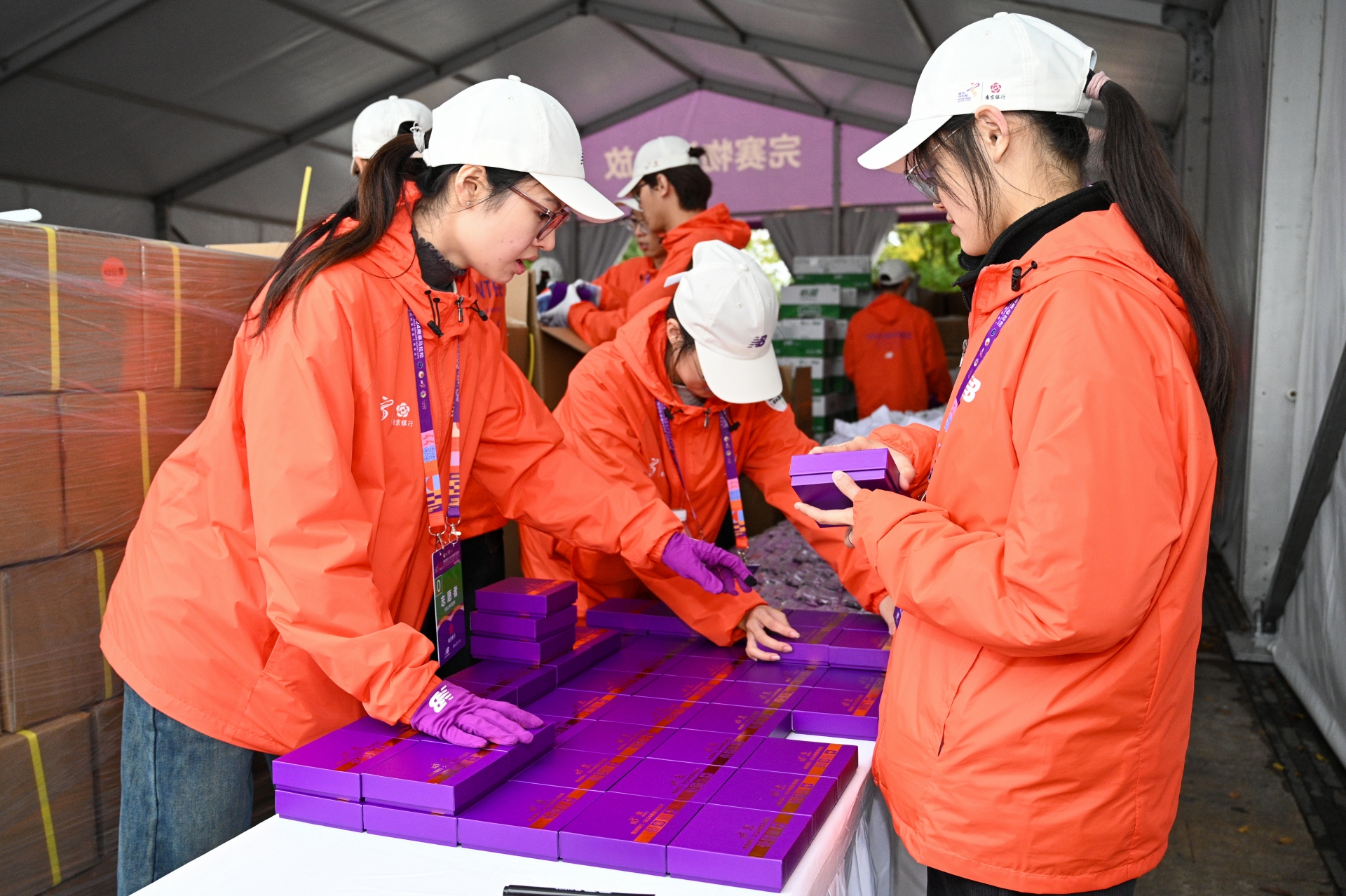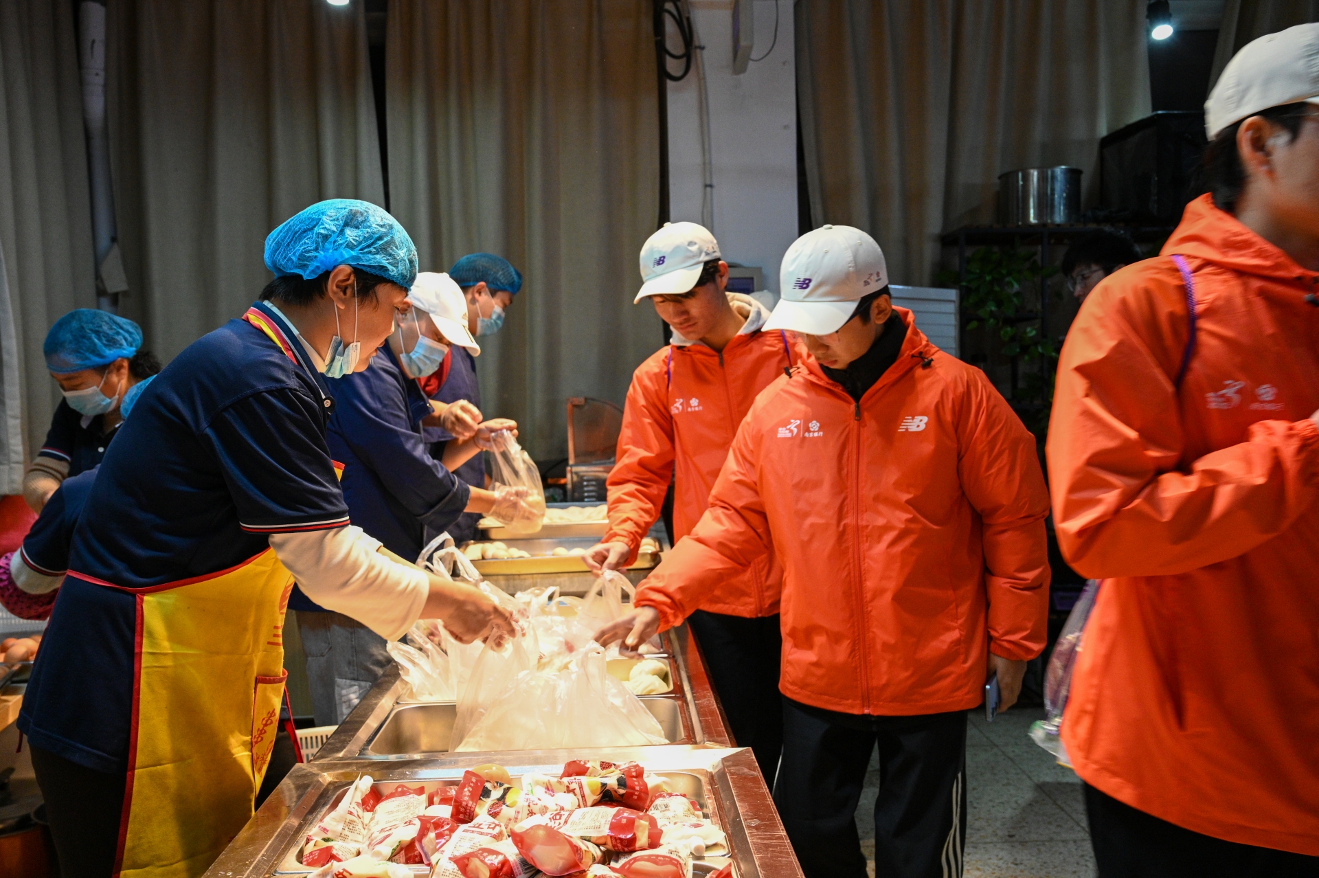 比赛当日,全程终点处的志愿者们向参赛选手提供温暖贴心的服务。“当参赛选手顺利从我们手上接过物资表达感谢的时候,真的非常感动!”在场的志愿者们激动地说。