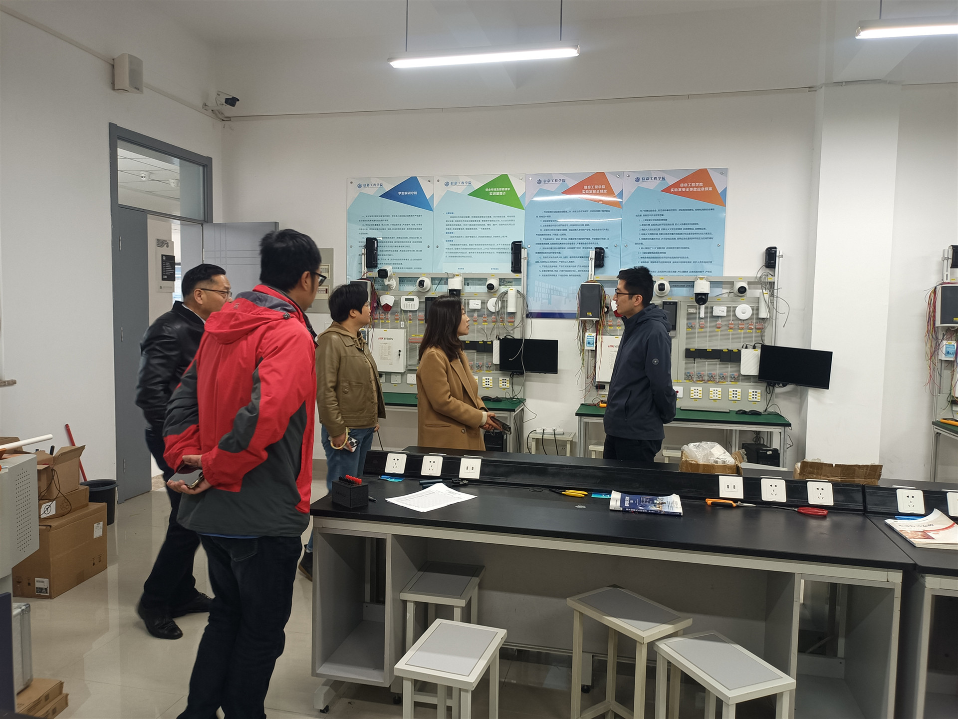 为深入推进专业建设,提升实验实训教学质量,强化学生实践创新能力培养,11月19日,电子与信息技术系主任刘佳、副主任张宝华、电子信息工程技术专业负责人戴慧及专任教师孙军辉等赴江苏农林职业技术探花porn 信息工程探花porn 进行调研学习。信息工程探花porn 党总支教工第一党支部副书记崔明、信息工程探花porn 物联网教研室专任教师仲瑶热情接待并全程陪同刘佳一行。