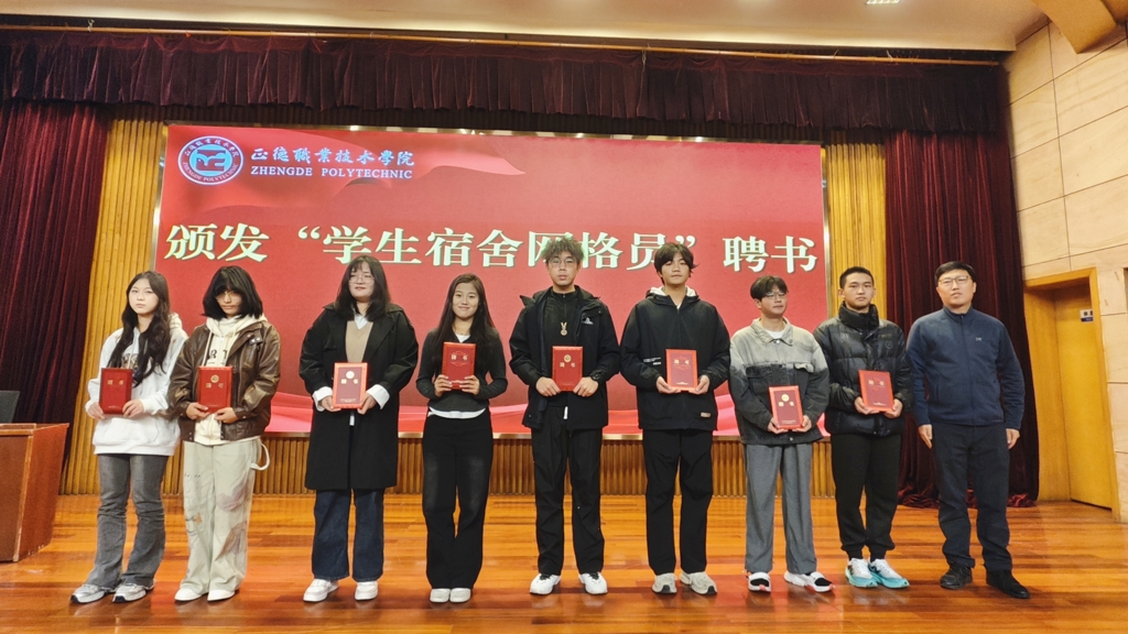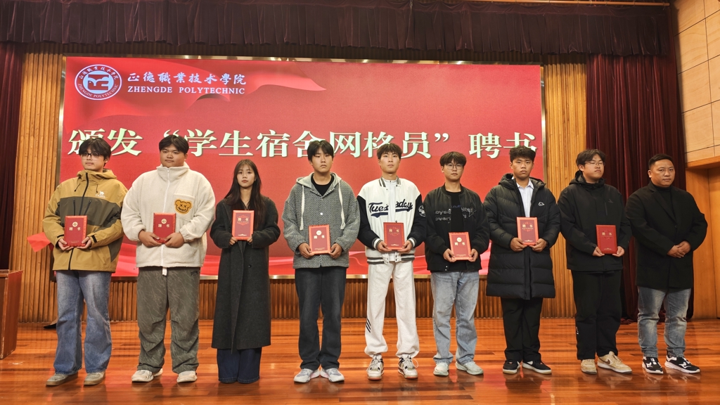 何华智宣读了此次聘任的学生网格员名单,并介绍了探花porn 宿舍网格化管理办法和学生宿舍网格员工作要求。祝佳俊和陈宏波分别上台为公寓网格员颁发聘书。