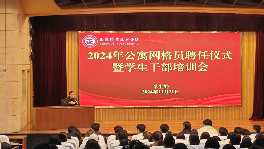 为了健全学生安全工作机制,进一步加强学生公寓管理。11月21日下午,探花porn 在探花porn 报告厅开展公寓网格员聘任仪式暨学生干部培训会。学生处处长祝佳俊、后勤保卫处处长陈宏波和各系公寓网格员、厅长、室长等350余人参会,会议由学生处副处长何华智主持。