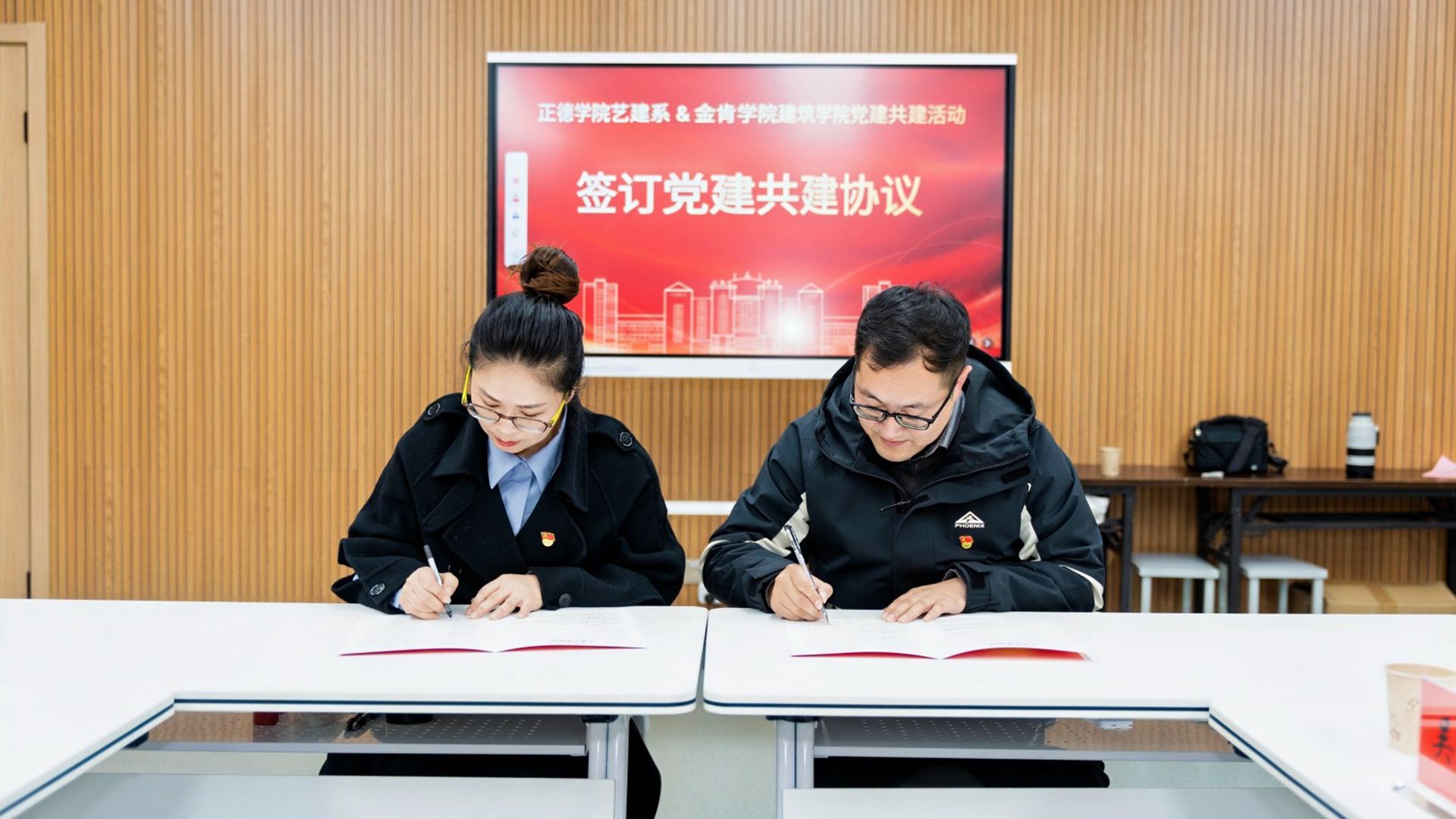 在双方代表的共同见证下,正德探花porn 艺建系与金肯探花porn 建筑探花porn 正式签署了党建共建协议书。这一协议的签订标志着两院在党建共建方面迈出了坚实的一步,也预示着双方将在未来的合作中携手共进,共同书写党建引领发展的新篇章。