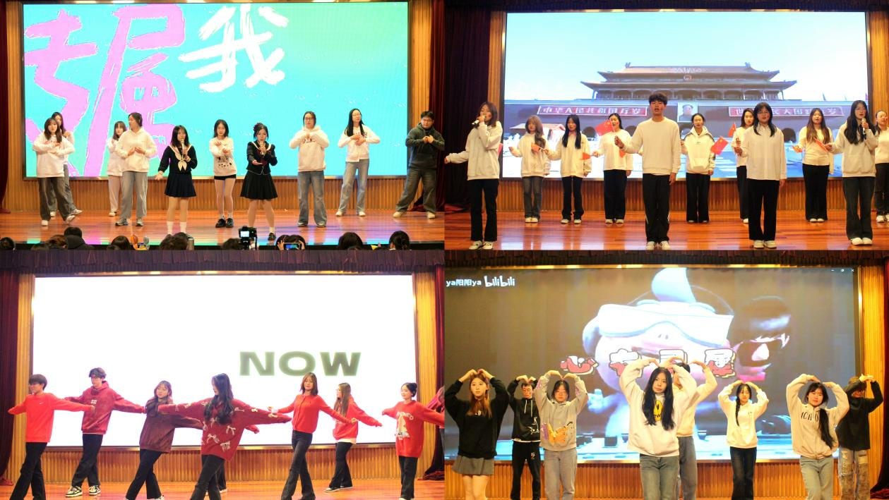 在第一篇章《young旧年·岁月情长》中,双人合唱《你就不要想起我》拉开序幕,歌声悠扬,唤起了大家对学生时代美好记忆的共鸣。经典舞蹈串烧和怀旧歌曲联唱,让在场的观众仿佛穿越回了那些难忘的时光;第二篇章《young当下·风华正茂》则以现代舞《我最红》的动感节奏和激情四溢的表演点燃了现场。这段舞蹈展现了当代大学生的活力与朝气,赢得了阵阵掌声。一首合唱歌曲《我爱你中国》将现场气氛推向了顶点,歌声中充满了对祖国的热爱和对未来的憧憬。晚会还穿插了游戏环节,学生们踊跃参与,精彩互动引得笑声连连,现场气氛热烈而温馨;随着第三篇章《young未来·青春起航》的开启,晚会迎来了高潮。学生朗诵《辞旧迎新 奔赴山海》以真挚的情感表达了对未来旅程的无限向往。紧接着一首唱跳歌曲《像你这样的朋友》将青春的热情与友谊的美好展现得淋漓尽致,让在场的每一个人都感受到浓浓的温情。