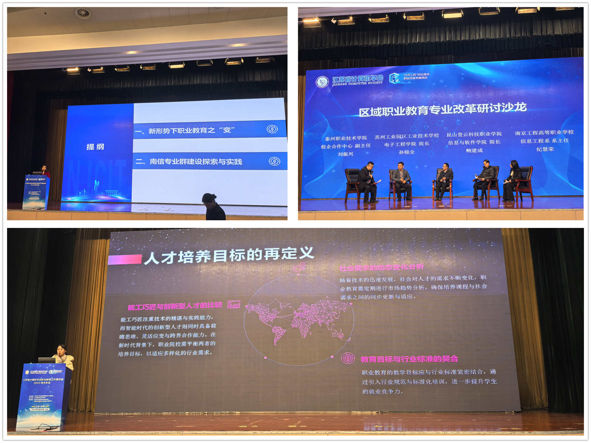 本届年会围绕当前职业教育的热点与前沿发展,设置了五大主题板块,内容涵盖职业教育数智化转型、现代职业教育专业建设、职业教育体系创新模式、AI赋能下的实战应用,以及“江苏工匠”岗位练兵职业技能竞赛课赛融合的经验分享与研讨沙龙。通过专题报告、案例分享、深度研讨等多种形式,与会嘉宾深入交流,集思广益,推动理念与实践的深度融合。