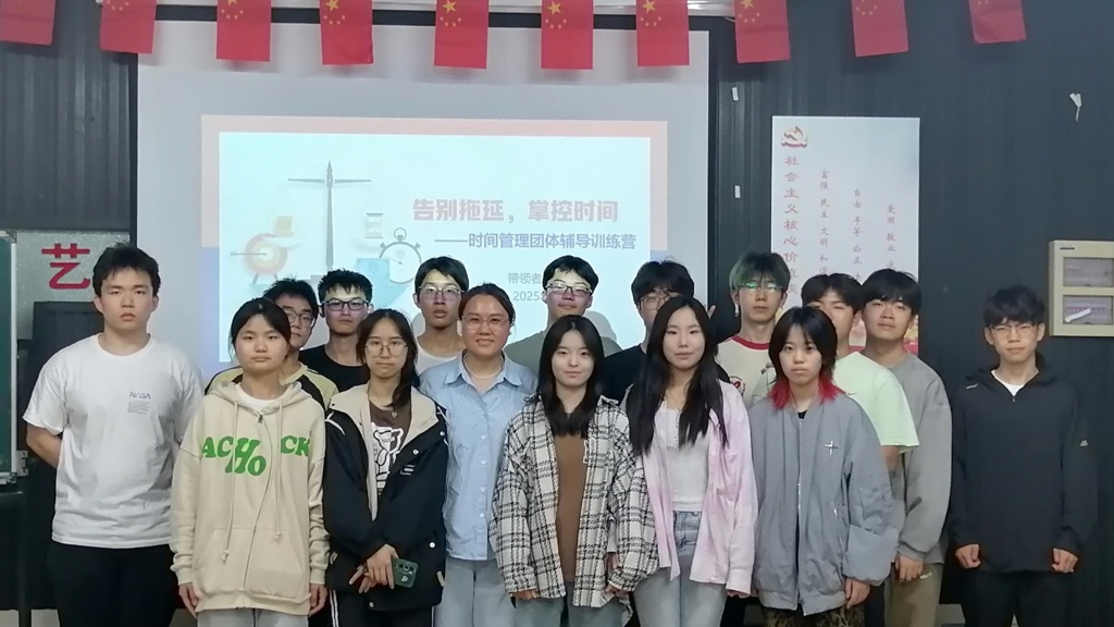 第二场团辅,由心理中心教师樊荣带领15名同学开启了“告别拖延,掌控时间”主题训练营。活动通过“抓鸭子”破冰游戏点燃热情,随后以绘制时间饼图、番茄钟专注训练、四象限任务分类等模块,帮助同学们直观发现“时间黑洞”,学会科学规划。张伟杰同学在分享中感慨:“刷手机的时间远超想象,今后要优先完成重要任务!”最终,同学们写下“时间管理承诺”,立志将承诺转化为行动,做时间的主人。
