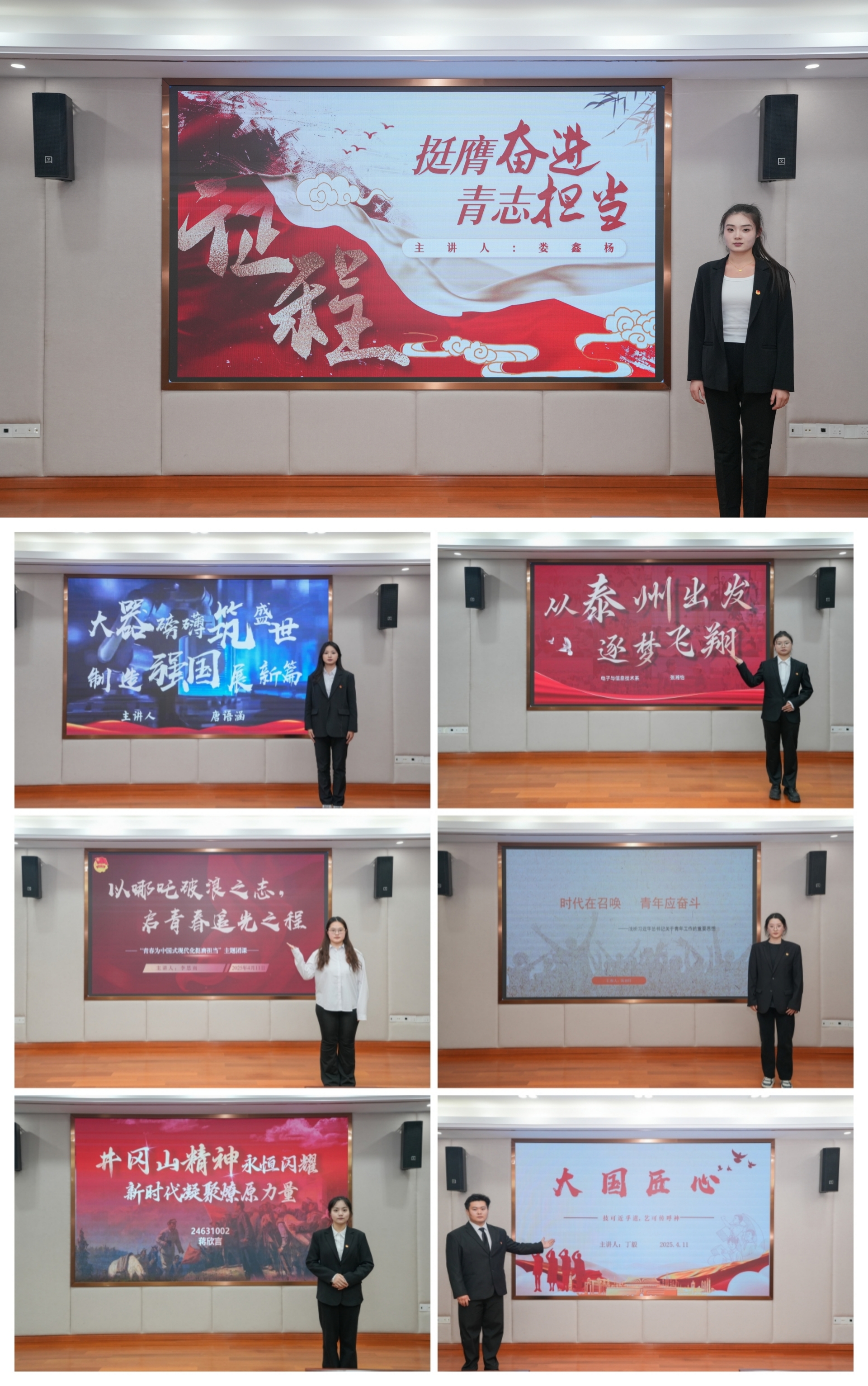 本次决赛聚焦团课宣讲能力,在前期初赛复赛中脱颖而出的7名基层团支部书记走上讲台以青年人的视角展现青年思想、青春力量。比赛中,团支部书记们结合日常学习工作实际,围绕“青春为中国式现代化挺膺担当”主题,用青年学生喜闻乐见的方式,将党的创新理论“大道理”转化为青年身边的“小故事”,带领大家共同体验了一场“沉浸式”主题团课。