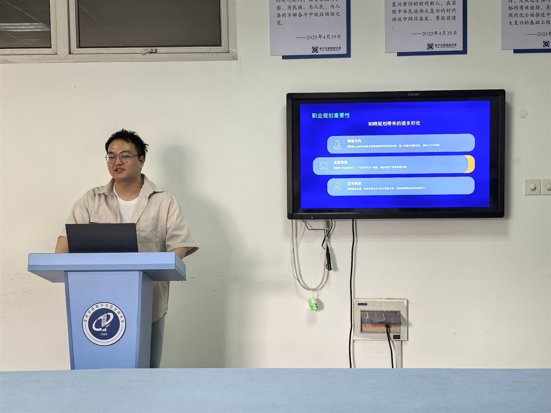 为充分发挥优秀校友的榜样引领作用,帮助 2024 级学生明晰职业发展方向,提升专业实践认知,5月16日,电子与信息技术系举办“学长来了”分享会暨军工校友面对面活动。本次活动特邀2024届优秀毕业生戴立志作为主讲嘉宾,电子与信息技术系党支部书记、副主任赵欣,辅导员李兰香,2024级学生代表参加活动,会议由班主任戴慧主持。