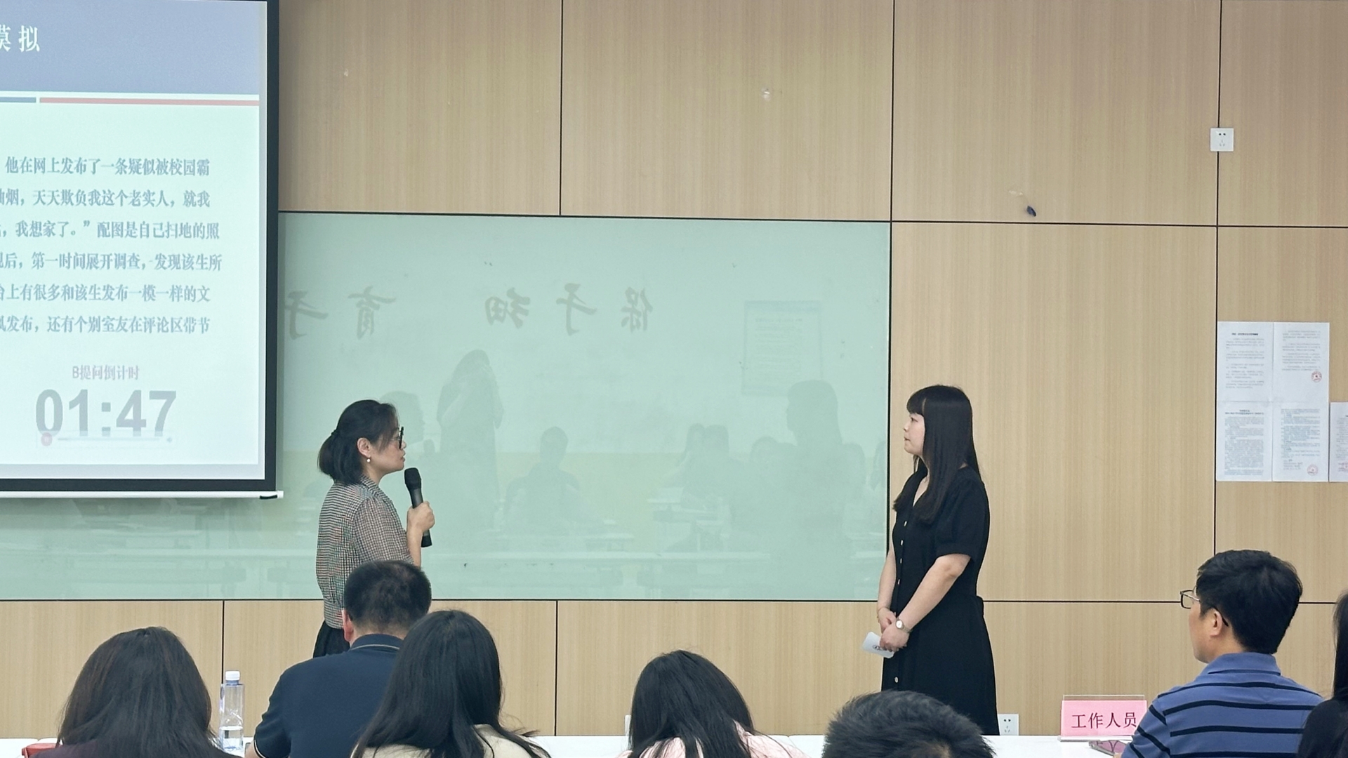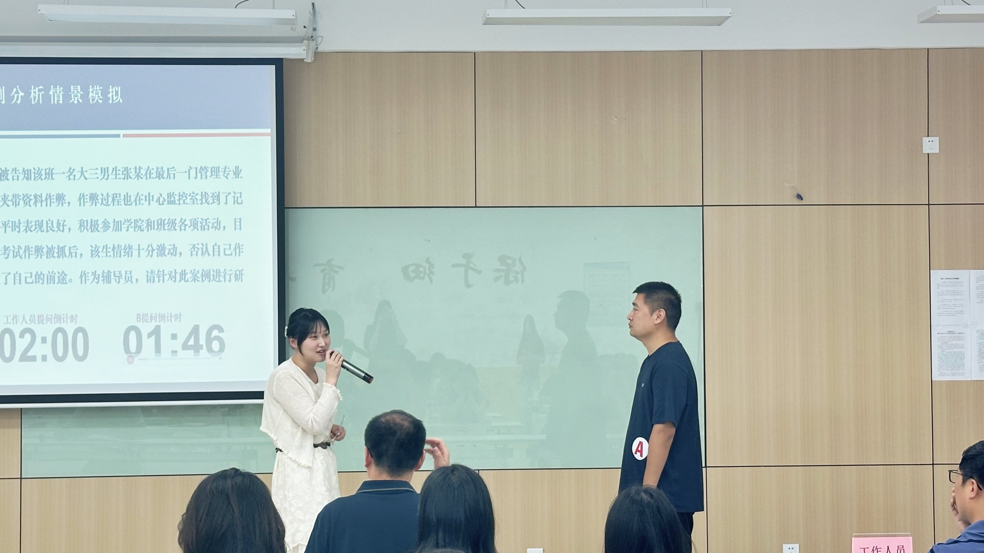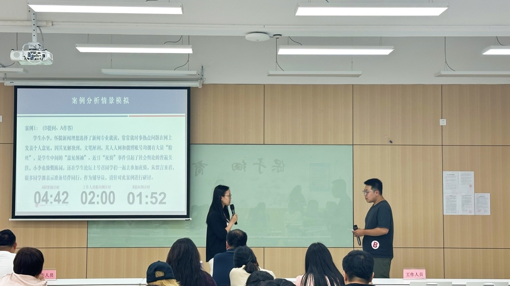 本次沙龙通过前期票选,票选出六个日常工作中的典型案例,沙龙现场由各系推选一名辅导员参加案例分析,通过AB角互换进行了三组案例分析模拟对抗。辅导员从“纸上谈兵”进入“实战演练”,现场工作人员对模拟进行现场点评和指导。通过模拟演练,辅导员就案例分析的全过程有了更准确、全面地认识,对破题思路和答题节奏有了更直观、清晰地把握。与会全体辅导员针对案例进行热烈讨论,大家讨论认为案例分析要“接地气、重实效”,研讨“好方法”,解决“真问题”。经过此次案例分析模拟,赋能辅导员从个体经验到方法论升级,助力辅导员将思政教育融入学生日常,做有温度、有深度的青春引路人。
