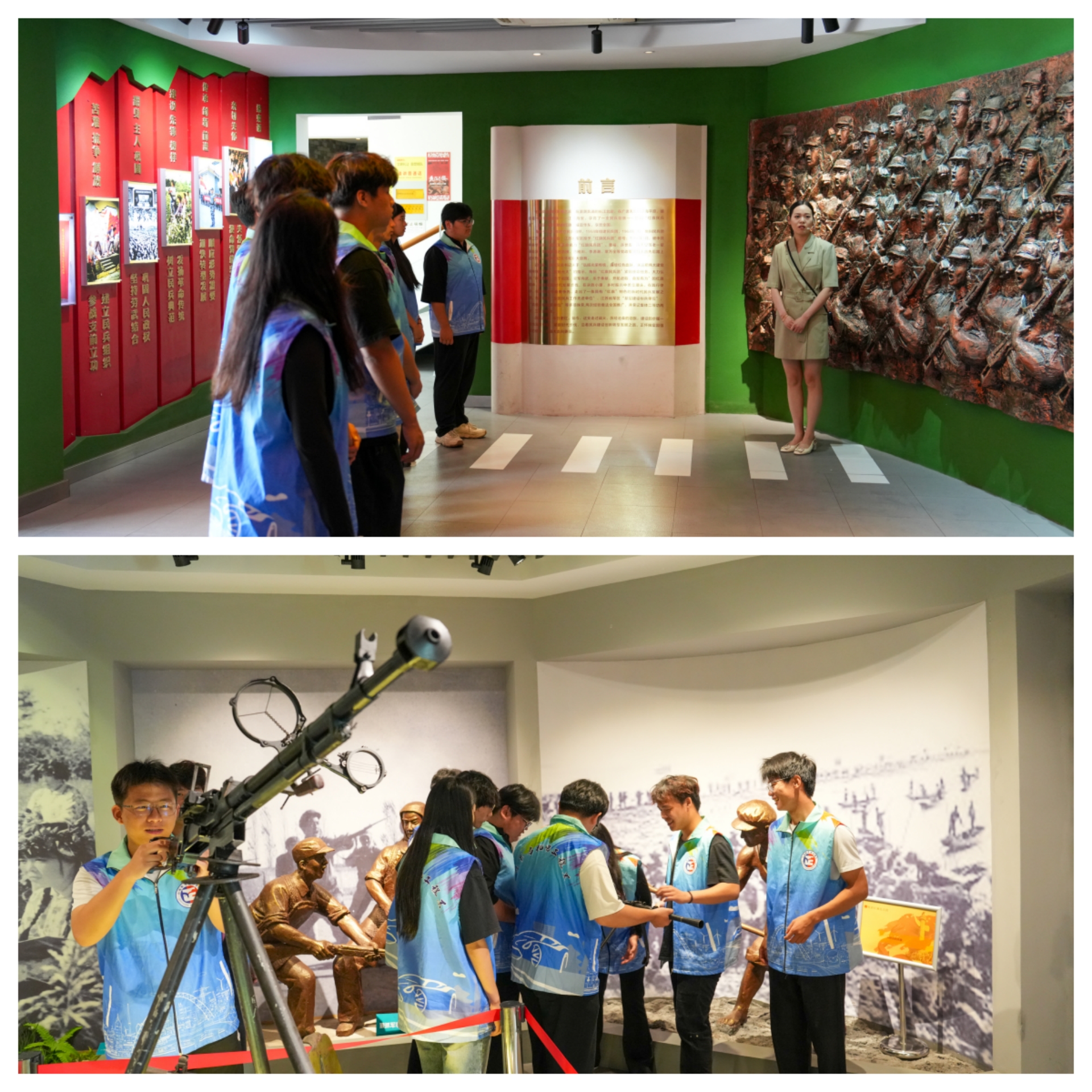 在苏中七战七捷纪念馆中,巍然矗立的27米高古铜色花岗岩“刺刀”,直刺苍穹,展示了新四军将士的英勇无畏;海安烈士陵园中巍峨的纪念碑上,镌刻着1946年苏中战役中牺牲的351位英烈姓名,无声诉说着“一寸山河一寸血”的沉重与荣光;实践团队在海安市博物馆里,感受着历史的厚重感、文化沉浸感与互动体验感的交织,通过参观体验,让历史知识与红色精神“活”了起来,为同学们的成长注入精神养分,推动文化传承与红色基因代代相传。