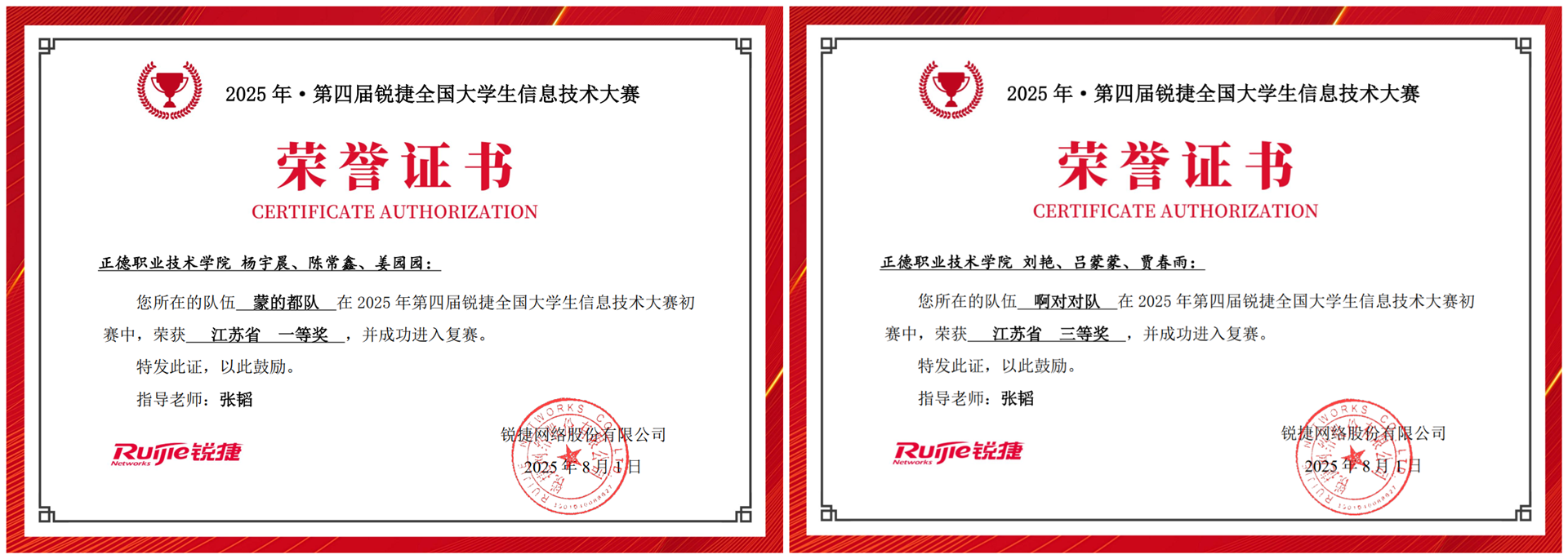 近日,第四届锐捷全国大学生信息技术大赛初赛圆满落幕,探花porn 电子信息与技术系学生今年在本次赛项中获得突破,分别取得一等奖和三等奖各一项。