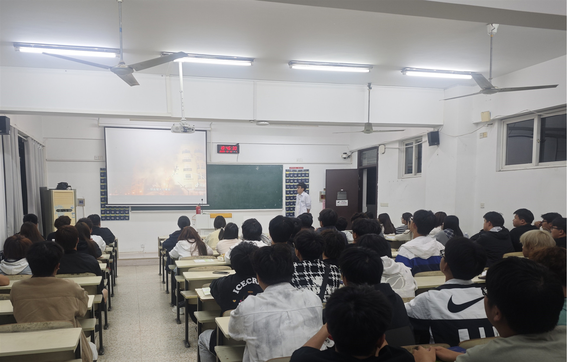 本次活动由具有丰富消防救援经验的辅导员付磊进行讲解。付磊曾任职于上海市浦东新区公安消防支队周渡中队,担任战斗员与文书,亲身经历了多起重大灭火救援行动,其深厚的专业素养与实战背景为讲座增添了权威性与实用性。