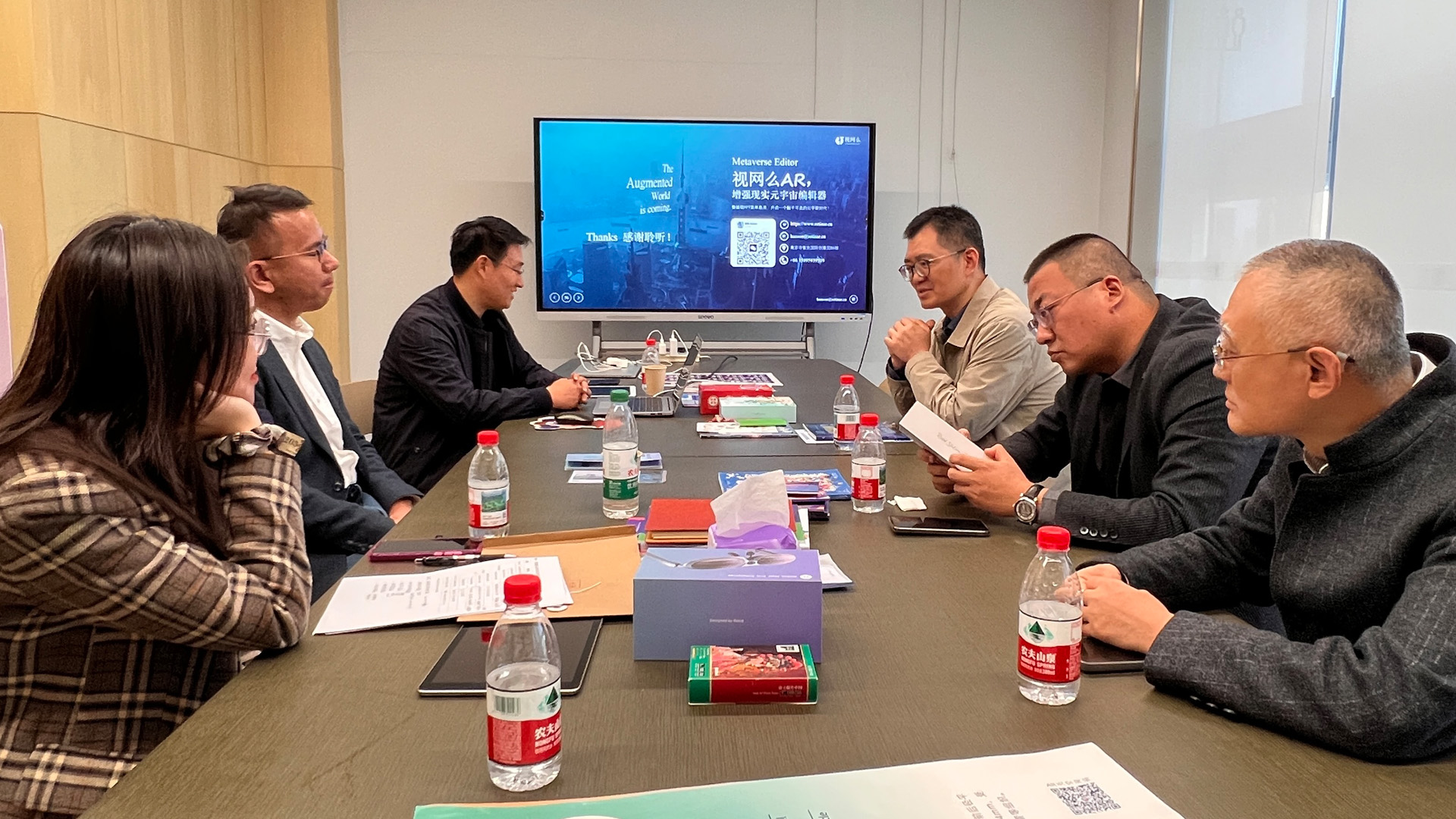 本次走访聚焦于合作形式与内容设置,在高质量人才联合培养、AR 技术落地、科普内容建库、按需规划并务实推进等方面达成了一致观点。张帅博士还介绍了该公司“元宇宙艺术展高校巡回展”的最新进展情况,彰显了企业在人才建设、AR 生态引领等方面所肩负的责任与担当。