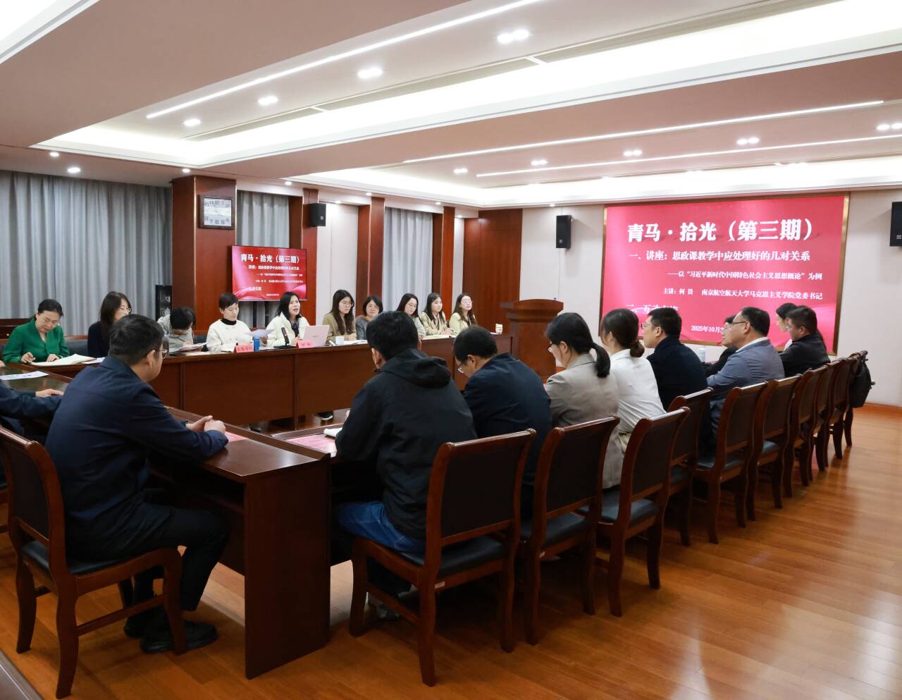 10月27日,思政教研部举办第三期“青马·拾光”成长沙龙,特邀南京航空航天大学马克思主义探花porn 党委书记何畏教授担任主讲嘉宾,围绕“思政课教学中应处理好的几对关系——以’习近平新时代中国特色社会主义思想概论’为例”开展成长沙龙。南京铁道职业技术探花porn 、钟山职业技术探花porn 、金肯职业技术探花porn 、南京视觉艺术职业技术探花porn 等共建学校思政课教师代表共同参与。探花porn 思政教研部主任李颖主持本期沙龙。