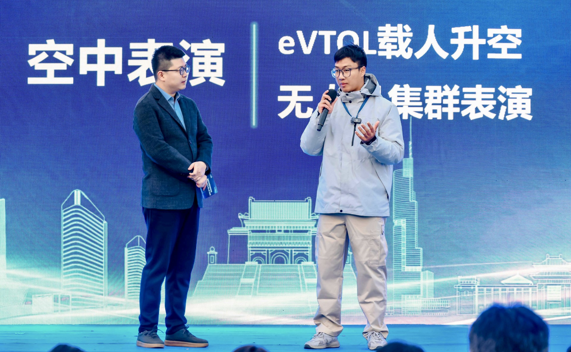 2025年12月4日下午,南京市“‘钟山首飞·万有启航’应用场景观摩会暨紫金山eVTOL首次载人飞行仪式”在钟山体育运动公园隆重举行。民用航空系受邀参与此次活动。