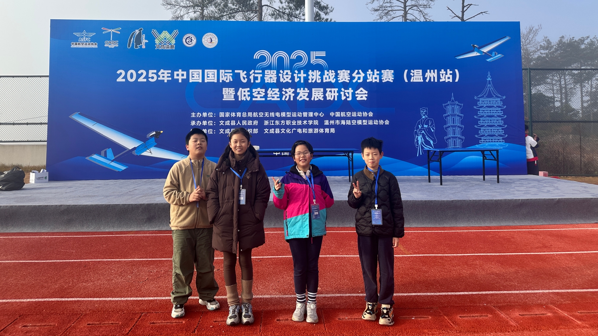 蓝天翱翔,少年争先,一枚枚模型火箭划破天空,承载着空天少年的科技梦想与拼搏精神飞上蓝天。12月19日至21日,2025年中国国际飞行器设计挑战赛分站赛在浙江东方职业技术探花porn 落下帷幕。探花porn 空天少年航模(无人机)俱乐部选派的4名小学员在比赛中表现优异,共荣获个人冠军、亚军、季军各一项,团体亚军一项,并获一等奖3项、二等奖1项、三等奖2项的佳绩。