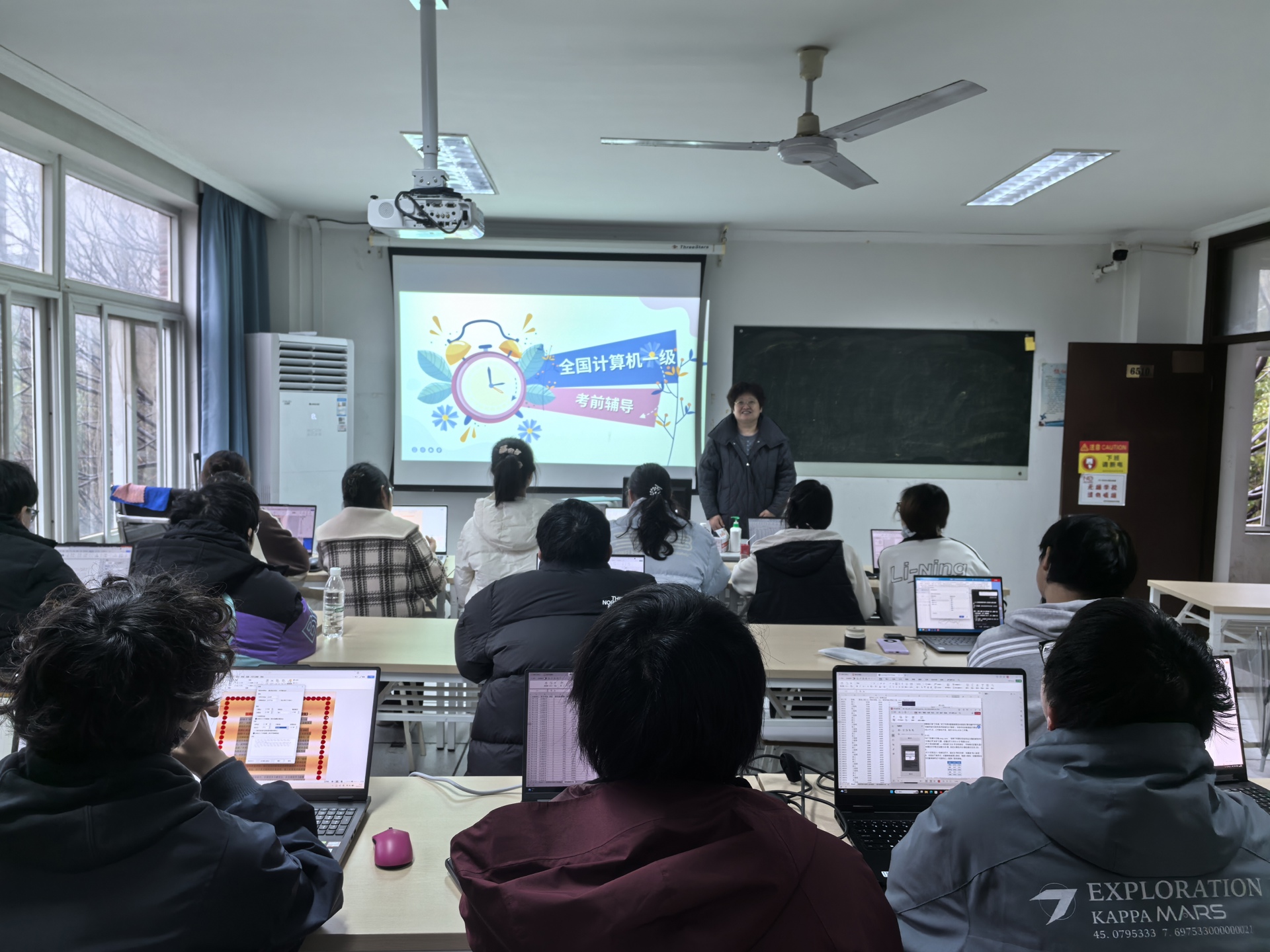 四个小时的集训中,戴慧围绕考试大纲和常见题型,针对计算机基础知识、Windows操作、文字处理等模块进行了系统梳理和重点讲解。通过真题演示和操作指导,帮助同学们查漏补缺、掌握答题技巧。现场学习氛围浓厚,同学们认真听讲、积极提问,课后仍有多人主动留下继续练习,展现出良好的备考状态。
