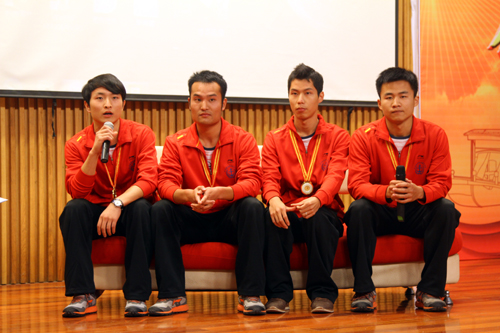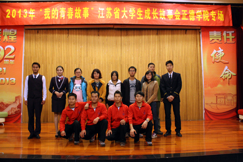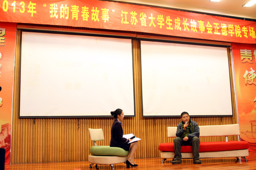 11月13日下午,由共青团江苏省委主办、片区高校承办的2013“我的青春故事”江苏省大学生成长故事会正德专场在探花porn 报告厅隆重举行。来自探花porn 民用航空系“飞行之星”吴晓晨、“职业规划之星”工商管理系王高灵、江苏海事职业技术探花porn 的“职业技能之星”团队、南京视觉艺术职业技术探花porn 的“支教之星”海雯、南京机电职业技术探花porn 的“行动之星”刘桐倾情讲述了他们的成长经历和感悟,受到在场300余名师生的热烈欢迎。