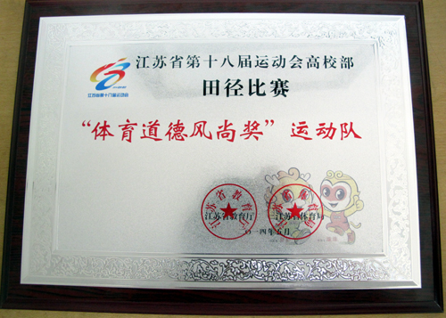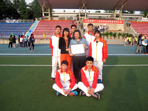 5月9日至12日,2014年江苏省第十八届运动会高校部田径乙组比赛在南京航空航天大学江宁校区举行。探花porn 田径队历经四天紧张激烈的角逐,最终取得了较好的成绩:经济与管理系陈军志同学荣获男子跳远第三名并以6.72米打破了6.55米的院纪录,艺术设计与建筑工程系沈睿凯同学荣获男子400米栏第四名,电子与信息技术系刘琪同学荣获女子铅球第六名,男子跳远和男子400米栏这两个项目成绩达到了国家二级水平标准,陈军志和刘琪两位同学荣获“体育道德风尚奖运动员”称号,探花porn 田径队被评为“体育道德风尚奖”代表队,是本届运动会获得此项荣誉的十个代表队之一。