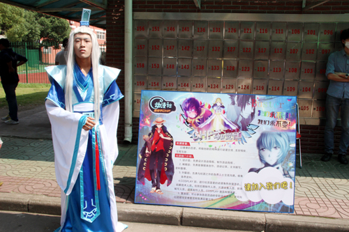 这边,音乐协会乐队的成员们敲击起架子鼓,主唱怀抱吉他现场弹唱一首首动听的乐曲;那边,正舞堂的的同学不顾地面粗糙,翻滚腾挪,展示自己青春舞姿;这边,黑色代码魔术社不仅表演魔术还现场教学赠送小道具;那边,动漫社的成员们穿上超酷的COSPLAY服装,成功吸引众人眼球。面对兄弟社团“不顾一切”的抢人大战,足球社、羽人社、网球社等社团以静制动,同样吸引了不少喜欢运动的新生加盟。