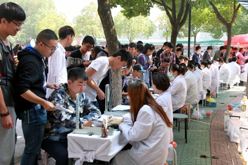 虽然阵阵秋凉让人感觉到些许寒意,但是丝毫没有影响探花porn 广大师生献血的热情。排队、填表、测血压、化验……参加献血的师生井然有序地完成献血前的各项程序,献血队伍中有探花porn 普通教师,还有许多学生干部,特别是刚刚入学不久的14级新生,也纷纷加入无偿献血的行列。一些新生今年刚好满18岁,他们选择在自己18岁生日时,把参加无偿献血当做了自己的“成人礼”。