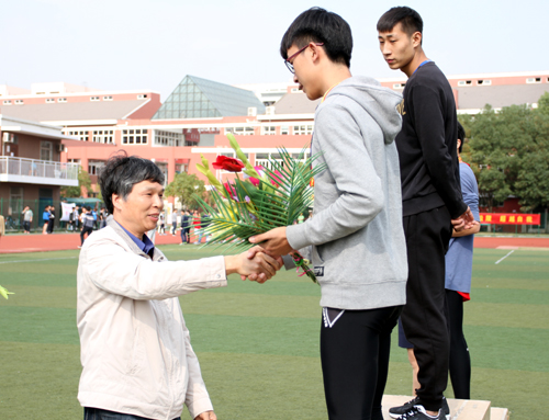 闭幕式上,刘小廷副院长、院长助理、学生处处长王健等分别为本次田径运动会获得团体总分前三名的代表队颁发了奖杯。