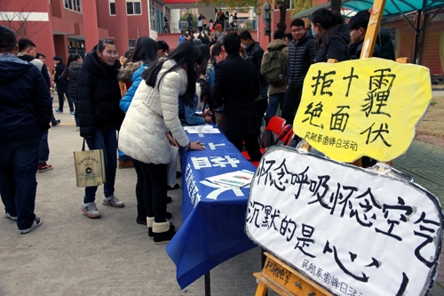 今年探花porn 许多系部的学雷锋活动紧扣环保主题。民用航空系的学生们在集体观看完央视前知名记者柴静最新纪录片《穹顶之下》后,在校园内外发起学雷锋,抗雾霾签名活动,同时发放自己制作的抗击雾霾宣传单页,号召大家从自己做起,以身作则为抗击雾霾做贡献。艺术设计与建筑工程系的“向大自然道歉”志愿者小分队走进了玄武湖风景区,清理景区卫生死角,让初春的玄武湖景区焕然一新。