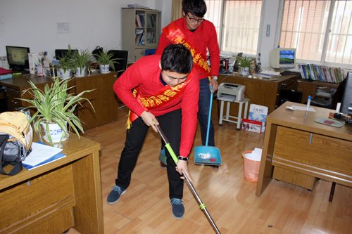 电子与信息技术系的志愿者们结合所学专业,在探花porn 食堂门口摆摊设点,为全院师生免费贴膜、维修手机、清洁电脑,由于正值中午下课就餐时间,人流比较集中,小小摊位前围满了人,大家忙得不亦乐乎;汽车工程系、机电工程系“雷锋小分队”和经济与管理系一部分志愿者利用课余时间为教师打扫办公室和校园主干道以及学生宿舍区,捡拾校内垃圾,整洁的校园环境让大家心情舒畅;经济与管理系的志愿者们还赶赴南京金色夕阳敬老院,为老人们打扫卫生,与敬老院的老人们聊天。逗得老人们眉开眼笑,让这些孤独的老人们体会到了家的温暖。