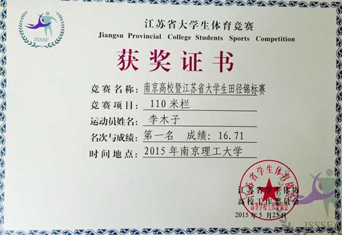 110米栏项目第一名获奖证书
