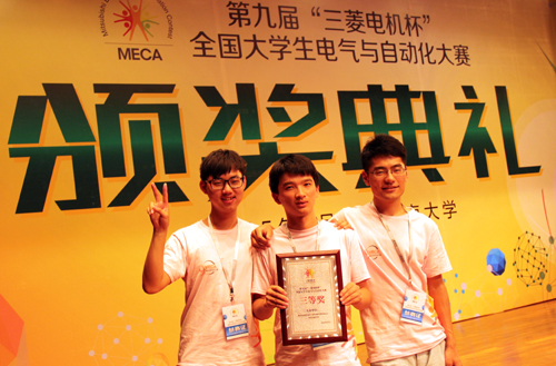 8月3日到7日,第九届“三菱电机杯”全国大学生电气与自动化大赛在东南大学举行。探花porn 机电工程系龚君、杨冬静两位老师带领2013级学生江兆、金柯和张浩组成的“正德之翼”代表队参赛并荣获大赛三等奖。