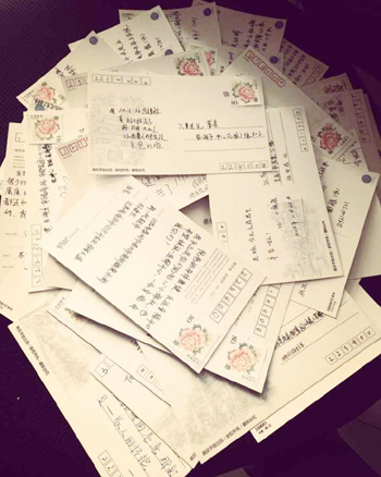 同学们展示写在明信片的感恩与祝福