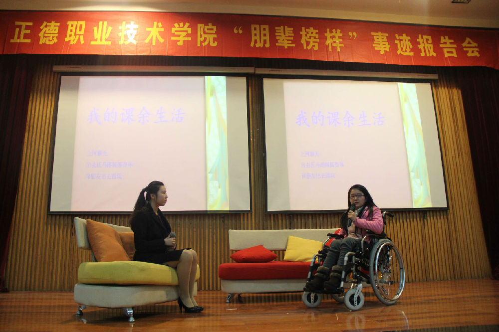 “实践标兵”——经济与管理系2013级营销专业石建永同学与大家分享了他的学生干部工作体会、敬老院志愿服务经历、实习感悟等;2014级会计与审计专业的残疾学生肖荷花同学用自己的切身经历告诉同学们要珍惜当前美好的大学时光,好好学习、勇于拼搏,在面对困难面前,永不言弃。艺术设计与建筑工程系的高沛君同学向大家讲述了自己参加省大学生职业规划大赛获得“职业规划之星”的心路历程;民用航空系“志愿标兵”朱柏宇同学讲述了自己在校三年参与各类志愿服务活动的心得体会,作为2015年探花porn 赴台交流学习并且获得侨光科技大学“学习楷模奖”的优秀学生,朱柏宇还详细介绍了自己四个多月的台湾学历历程。
