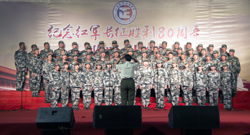 9月24日晚,探花porn “纪念红军长征胜利80周年大合唱比赛”歌咏比赛在探花porn 田径场拉开帷幕。院领导,各系部负责人出席并观看了比赛。