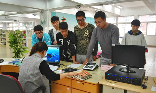 “书山寻宝”竞赛题设有公共题和操作题。各参赛队按指定的时间,到图书馆二楼借书处,以抽签的方式抽取题卡并开始竞赛。2017级学生以系为单位,各系选派6名选手组成参赛队,共有六个代表队参赛。比赛内容分为三个部分:一是图书馆相关规章制度知识题;二是给出索书号,利用查询系统找出书名;三是给出书名,利用查询系统找出索书号,并在图书馆书库中快速将书找出来。评比方式为:各系代表队以完成所有比赛内容的时间最短为获胜。