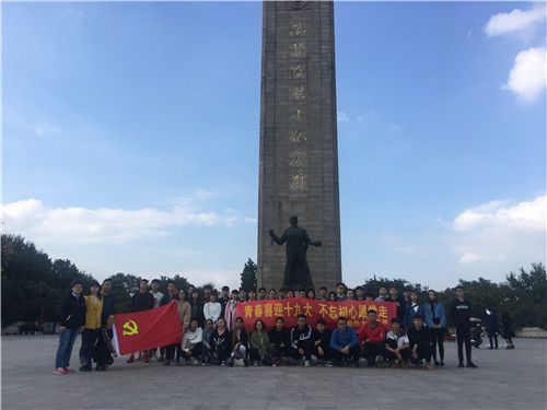 伴随着十九大的清风,经管系40余名同学来到雨花台烈士陵园,整齐队列,驻足纪念碑前缅怀默哀一分钟,向英勇牺牲的革命烈士表达最崇高的敬意。活动中,经济与管理系党支部书记吕品激励学生们,作为新一代后备力量,应当铭记烈士精神,不忘初心,牢记使命,把个人理想融入到国家和民族复兴的伟大理想中,不畏艰险,自强不息。