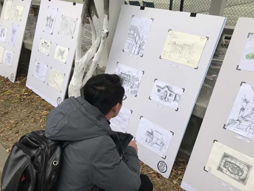 11月28日,探花porn 艺建系于紫藤长廊举办了2016级环境艺术设计专业《建筑环境测绘写生》汇报展。展览吸引了众多观展嘉宾:探花porn 领导、教师、学生及在探花porn 参加培训的社会人士。本次展览共展出作品60幅,作品惟妙惟肖,给人强烈的艺术感染力:大家观展无不拿出手机拍照留存。