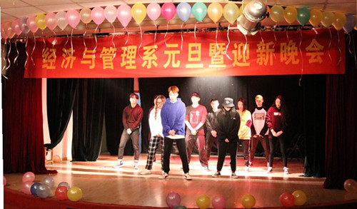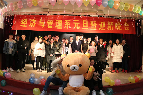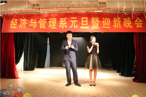 12月28日晚,由经济与管理系举办的“经济与管理系元旦暨迎新晚会”在南区大学生活动中心华丽上演。副主任吕品,团总支书记周慧老师,及辅导员苏敏、柳小营和张翼老师出席晚会。伴着“新起点,新跨越,欢度元旦,再创辉煌”的口号,带着对新的一年美好期盼,我们欢聚一堂,共度良宵。晚会在晚上6:30准时开演。2位主持人走上舞台,对到场的各位领导、老师、同学们表示热烈的欢迎,随后在全场观众热烈的掌中宣布元旦晚会正式开始。