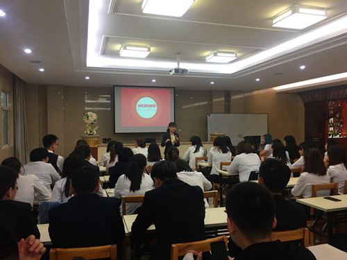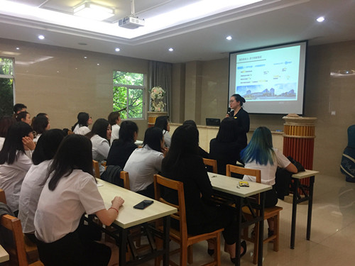 为更好的落实此次双选会,加强酒店管理专业学生对专业认知,5月22日下午13:30,在酒店一体化教室召开了酒店管理专业顶岗实习宣讲会。会议在索菲特银河酒店的HR与同学们亲切的互动中拉开了帷幕,随后,南京华泰万丽酒店、南京钟山高尔夫索菲特酒店、南京银城皇冠假日酒店、南京湖滨金陵饭店、南京禄口机场铂尔曼大酒店等六家酒店代表做了精彩宣讲。各酒店从公司背景、公司文化、公司现状及实习生职业发展、对人才培养等方面作了具体介绍。
